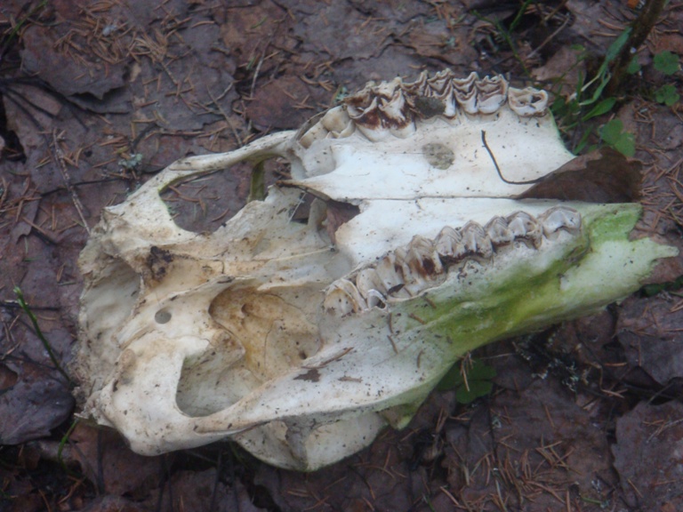 А еще нашел место, где волки приговорили лося, оставив только немного шерсти и черепушку.