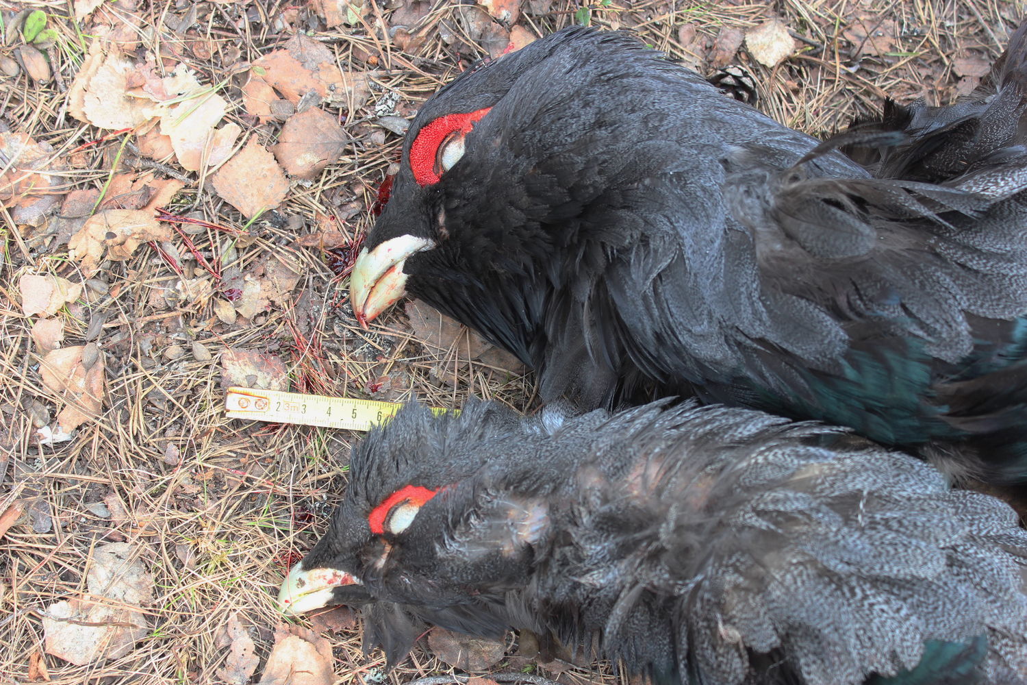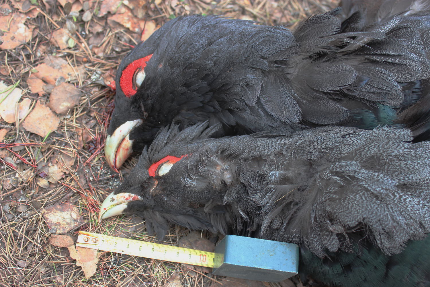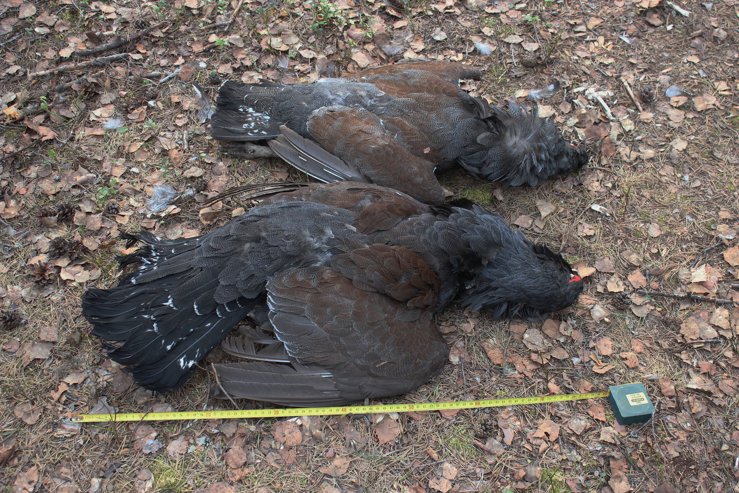 уже в избушке сделал несколько фото для сравнения. помню, что у молодого петуха хвостовых перьев было 16, а у взрослого 18 или 20 (точно не скажу). безмена с собой не было, поэтому вес не измерялся. кому интересно, все остальное можно увидеть на фото.
