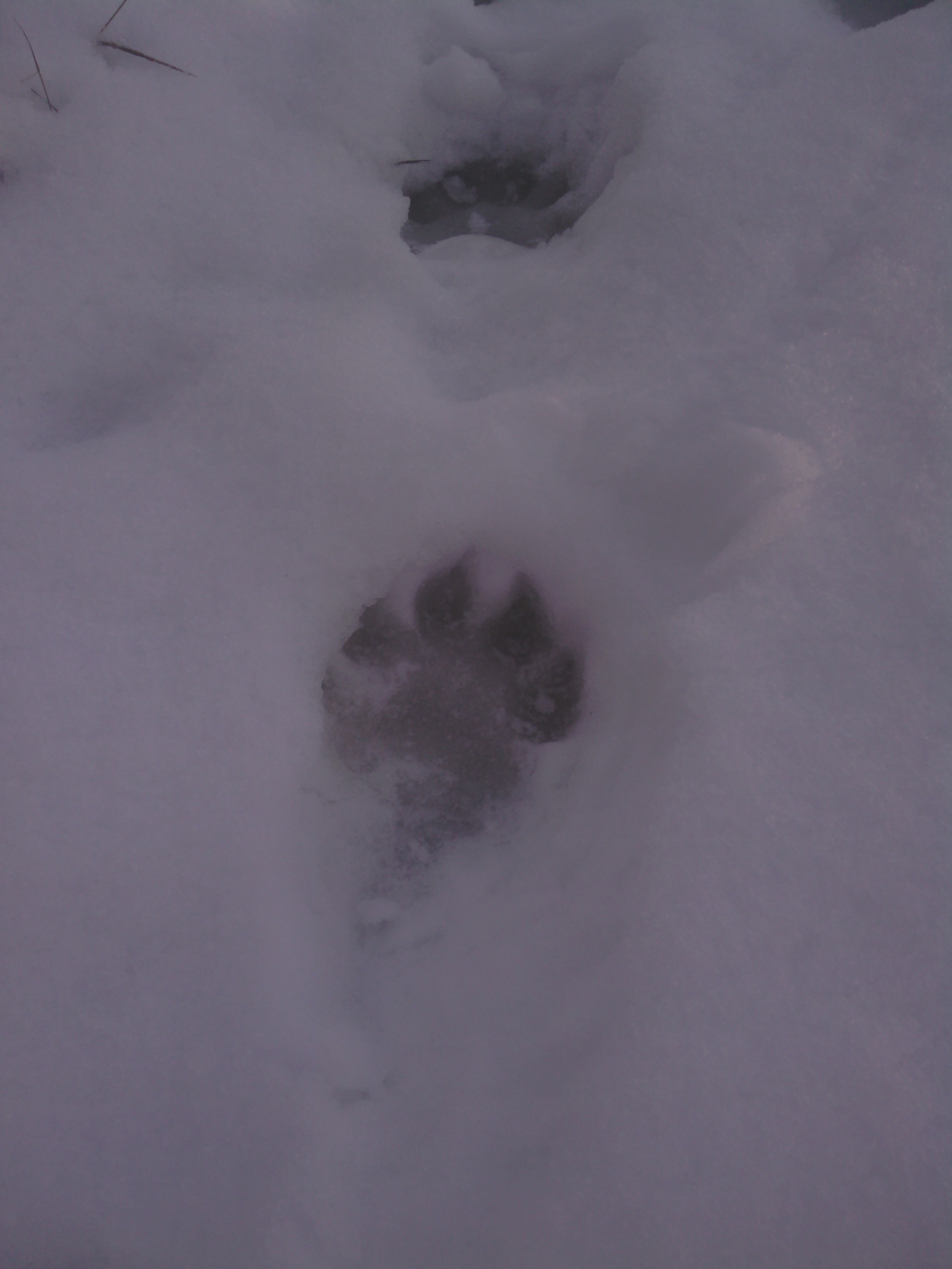 Бродил бедняга, вроде не шалил. По моим следам однажды прогулялся. Потом пропал, скорее снова залег. Но это было не в марте, пораньше.