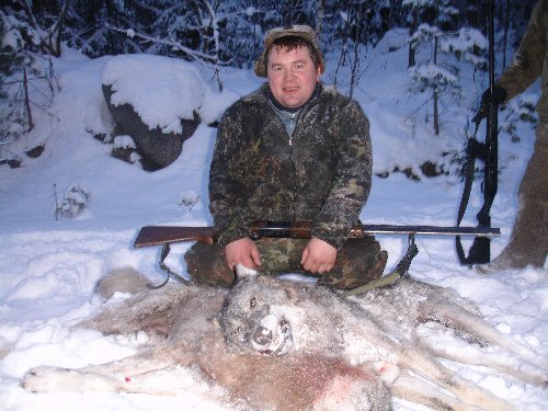 Не повезло в этом году с волком, ну не пришёл он к срубу, зима тёплой видать была и к деревне волки подходили тока в начале неё, в следующем году будем с осени приваду делать. Собаку одну обратно попросили, а вторую пришлось.....