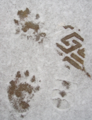 В прошлом году тоже по первому снегу такие следы наблюдал. Но все-таки решил, что слишком редкий гость в нашей широте россомаха - т.е. отдал предпочтение версии - молодой медвежонок. Но утверждать не могу...