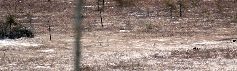 Проснулись мы почти в 5 утра. Красавцы! Хорошо что все собрано. Жмем газ к третьему дальнему токовищу. В 6 утра были рядом с током. И даже услышали не песню, а кряхтение то ли молодого, то ли запуганного до нельзя петушка. Почти сразу услышали выстрел. Затем еще. Ушли с тока, чтобы не мешать охотникам - не они проспали. Сходили на болото, отметили что у нашего шалаша токование косачей в самом разгаре. Со стороны глухариного тока был еще выстрел.