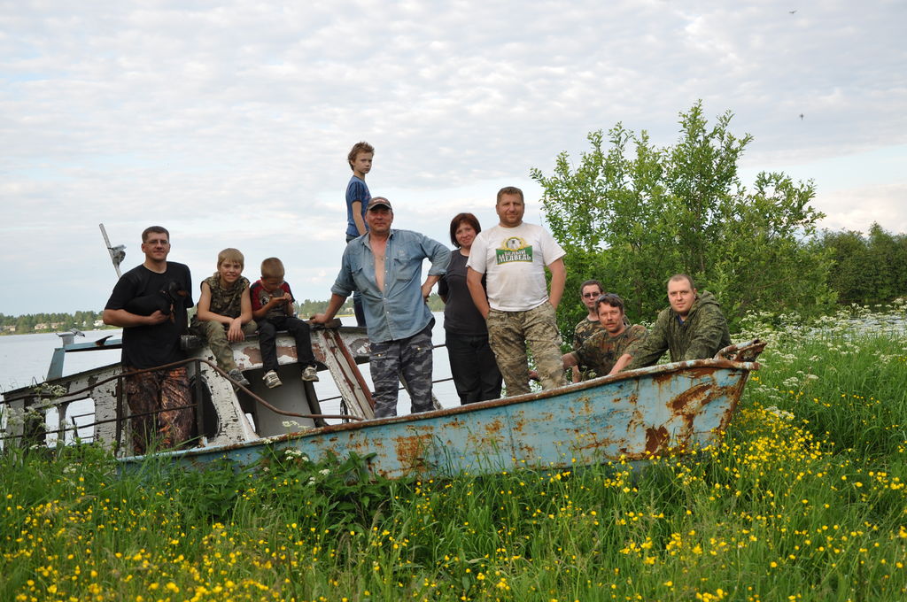 Вот тут то и наступило разочарование. Перед нами открылась панорама острова, и даже была видна одна из церквей, НО!, стоянки небыло!!! Довольно сырое место, палатки поставить негде, в право уходила ТРОПА с колеей. Разведка сообщила "Метров через 80, болото, встать негде." Загонять Патруля, небыло смысла, если бы даже, я и проехал и добрался бы до Боярщины... остальные бы не проехали, да и мне возвращаться было бы тяжко (лебедки пока нет). Поэто сфоткались и выдвинулись в район деревень Нижняя Салми - Южный Двор. В нижней и заночевали, стояли там две ночи.