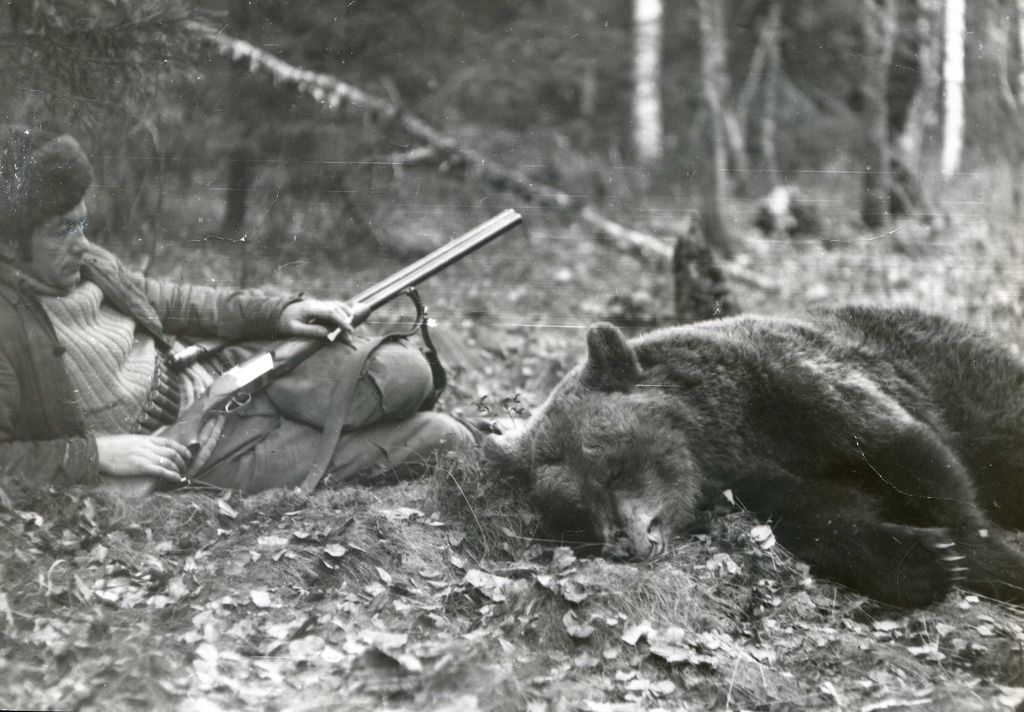 Третье фото -- это я в молодые глупые годы. Добирали с дружком на следующий день раненого медведя (без собаки!), прочесывая лес. Обошлось.