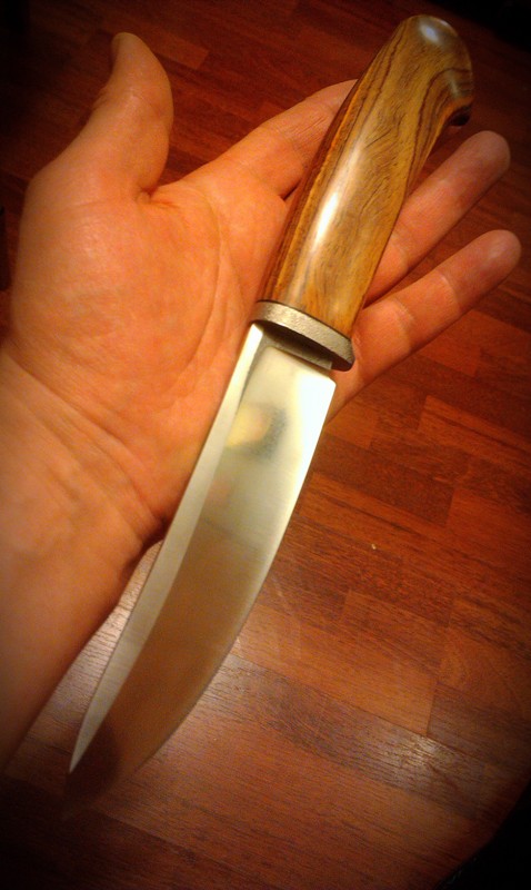 :co_ol: Сергей, уже свой если не стандарт, то вполне стиль клинков узнаваемый. :-ok-: :uch_tiv: Да, "клинок за пол часа" :co_ol: Одежкой так и не оделся, но вовсю работает. Заточку изюмительно держит :co_ol: