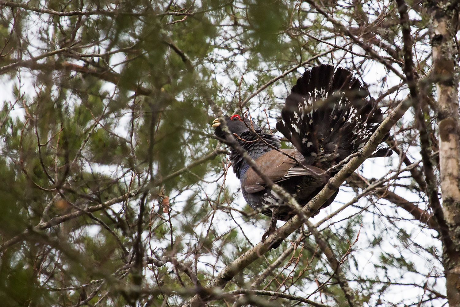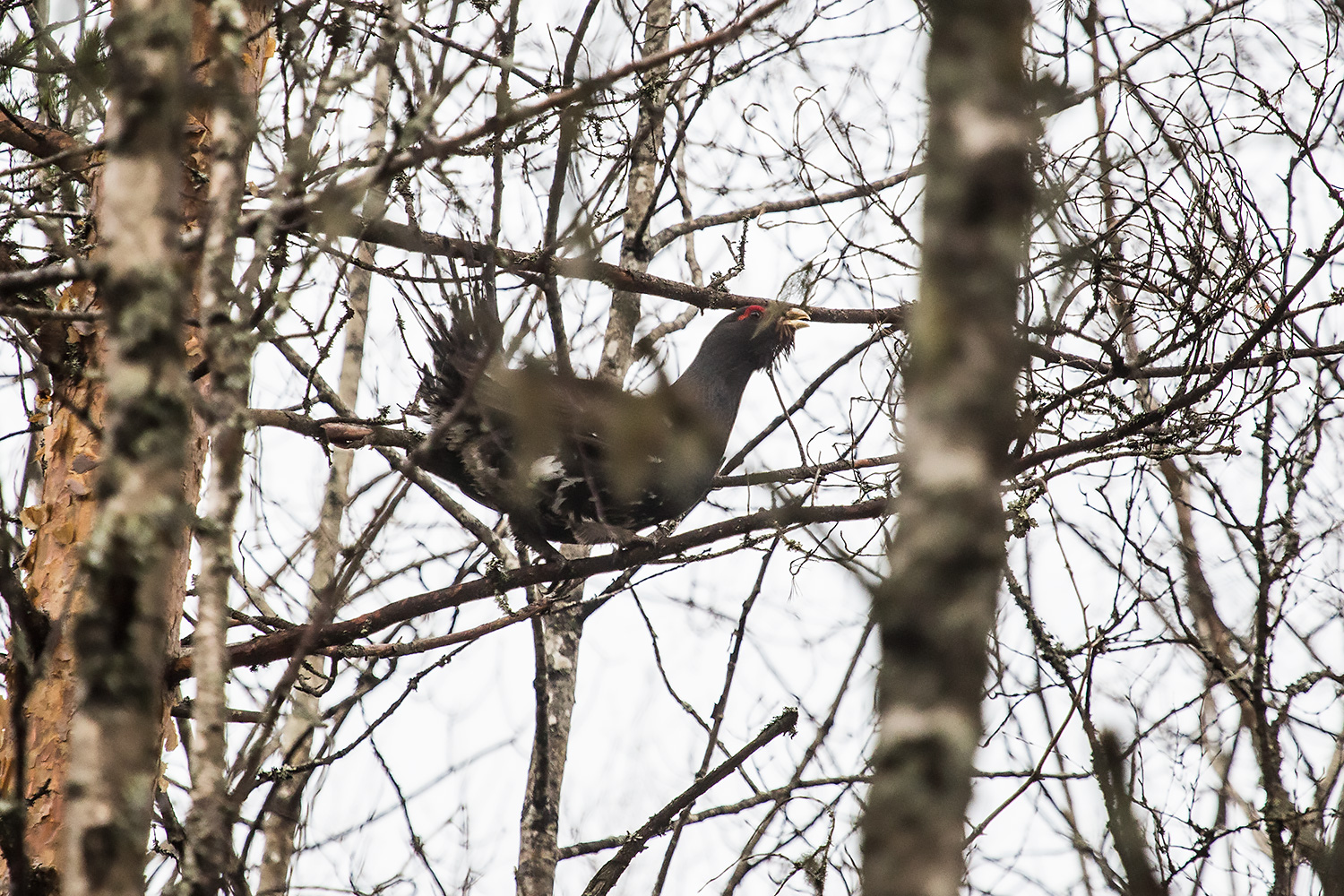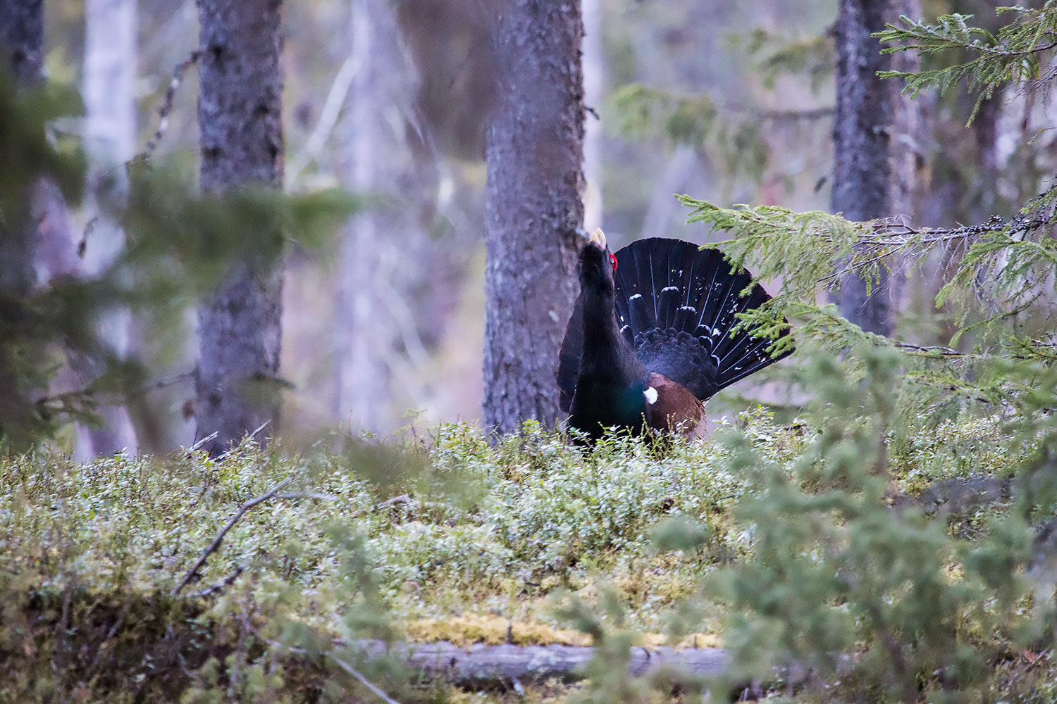 03.00 растянуло ночной сумрак. Вижу глухарика. Делаю запись звука песни.
