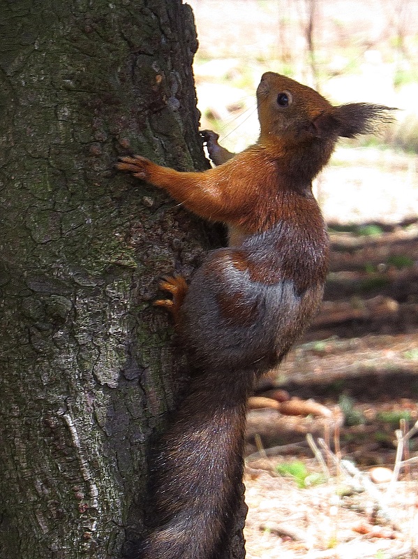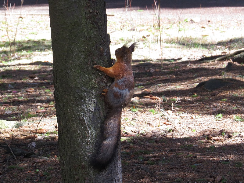 К нам в лагерь в Крыму тоже белки приходили. Хвосты облезлые, кисточек на ушах нет, худые... Жаль фото нет.