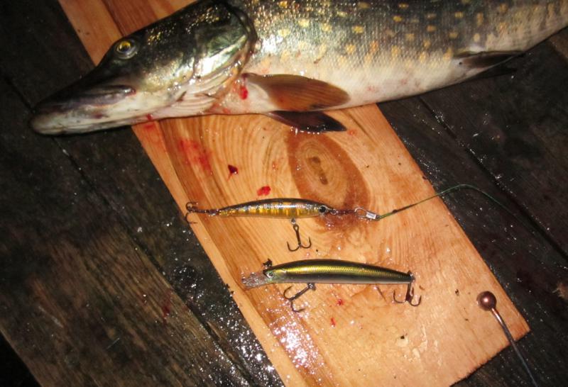 Ну и первый сюжет для новой темы. Третьего наконец то распечатал сезон открытой воды. Возвращался вечером домой и все таки решил тормознуться на речушке пополоскать спиннинг. Рыбалил в устье речушки. Для начала прошелся парой вертушек- ничего, не хочет мои железки есть. Поставил 6см минношку, со второй проводки поклевка и сразу бросила, перезабрасываю туда же- есть :ti_pa: вытащил первую :ya_hoo_oo: :ya_hoo_oo: Еще десяток забросов дал выход без поклевки. Подъехало две пары, пытались ловить на поплавок, один из мужиков оказался знакомым- учились в параллельных классах. Его товарищь, увидав мой улов, переключился на спин и так же прополоскав в холостую вертушку вытащил шнурка на воблерок. Сменил воблера, заброс - есть - еще одна пятнистая разбойница на берегу. Далее еще пару поклевок и несколько пустых выходов. Шука гоняла мелочь, то там то там разводы, но не била как это бывает. Обе рыбины и поклевки мягкие без рывков, висла тряпкой, и только после подсечки оживлялась. Перешел повыше на плесик, фонарь укрылся в горизонт и характер поклевок изменился, стали клевать резкими рывками, с плеском. Вытащил еще трех щучек и получил пару холостых поклевок и пару промахов с бурным плексом, еще парочку отправил расти дальше. Вот такая вот бурная и незапланированная, нечаянная радость. :hi_hi_hi: :ya_hoo_oo: Всего рыбалил где то час десять. Эмоции получены, да еще и уха с жарехой как бонус. P.s. Хааачююю на рыбалкуууу!!! :ps_ih: :-) :FB: :11: :FH: