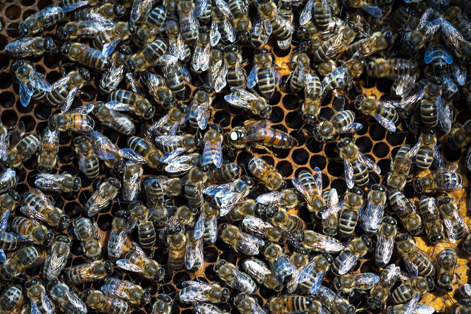 Пытались с дочкой старшей - сфотографировать пчелиную матку. И пчелок. В макро. Но не учли, что оба в масках - в окуляр не заглянуть - в результате - фото делала дочка "наугад - стреляя" на подставленную рамку с пчелами. Матка в кадр попала. Помечена белым маркером. Но с резкостью вышла промашка. Попробую в хорошую погоду без маски.