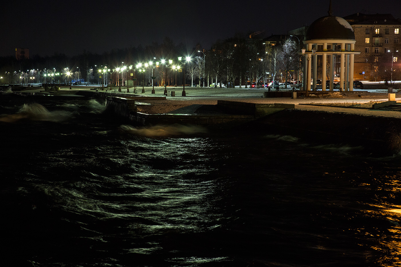 Эпоха расцвета фильтров была в доцветовую эру. там оно совсем понятно: ставим голубой и подчёркиваем дымку в пейзаже, жёлтый - пейзаж резче, красный - непередаваемые эффекты бурного моря и т. д. Сейчас, когда работаем с цветом, применение цветных фильтров малооправдано. Разве что градиентные. Миша с ними, наверное, больше всех нас работал. Вот и остаются нам УФ-, поляризационные да нейтрально серые. Первые, понятно, кроме защиты линзы иных функций не несут, что бы про них не писали. Вторые интересны на натурной съёмке, особенно в солнце, на воде и там, где есть блики. А последние именно для увеличения выдержки, если есть такая творческая задача. Ну, например, показать течение воды, когда слишком ярко на улице. Или снять гостиницу "Северная" так, чтоб на улице не видно было ни одного человека и машины.