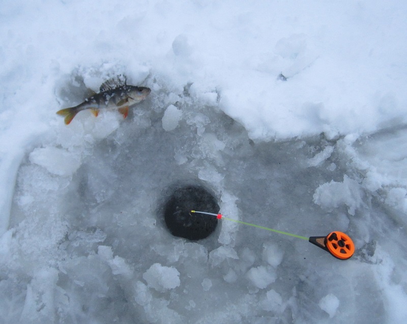 Первые лунки, блесенки- мормышки опущены в воду. Вот оно, рыбалка началась, три пары глаз гипнотизируют пятачек воды во льду. Сидим ждем, елы-палы, тут хоть рыба то есть? Время уже сколько прошло, минуты три поди уже рыбалим. Скромность конечно хорошо, :smu:sche_nie: но все ж сразу похвалюсь, стал открывателем рыбалки, и вытащил из лунки первого окушка.