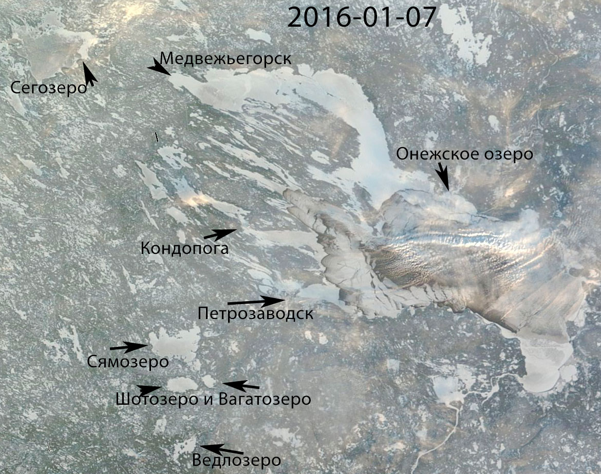 Ледовая обстановка на Онежском озере 7 января 2016. Свежие данные со спутника.