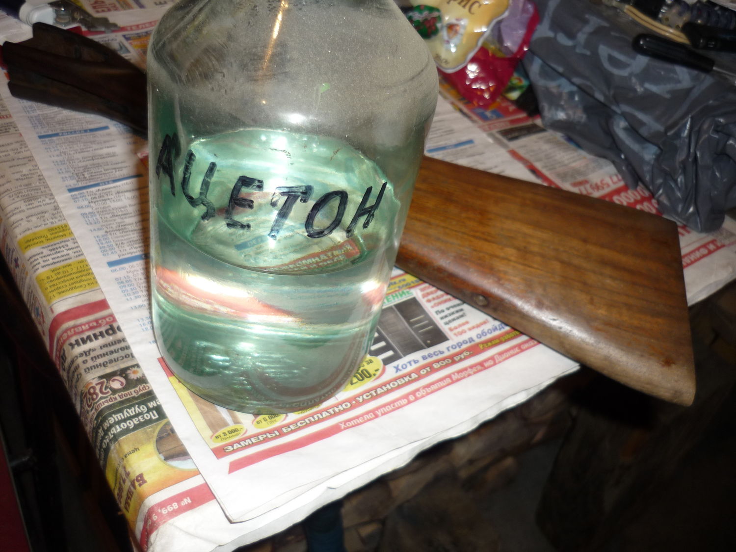 намотал тряпки на приклад, обильно смочил ацетоном, сверху намотал пакеты
