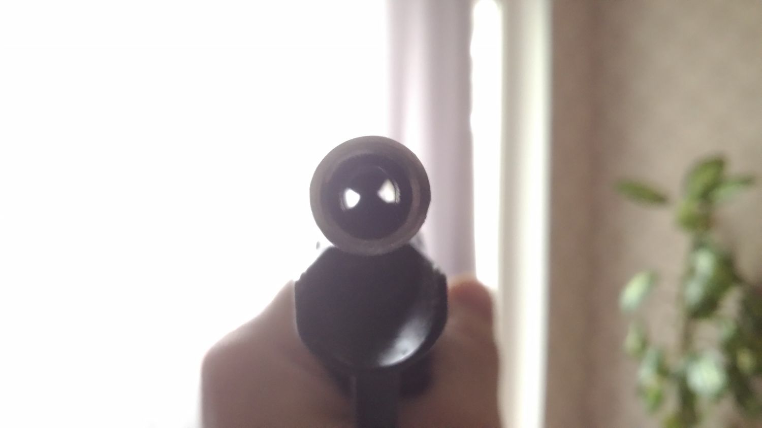 Вот, значит, отправил этот Хорхе на КСПЗ на перествол. Сделали, прислали назад. Ствол стал почти на 1,5 мм толще. При детальном рассмотрении хорошо просматривается чок. На просвет теперь выглядит так: