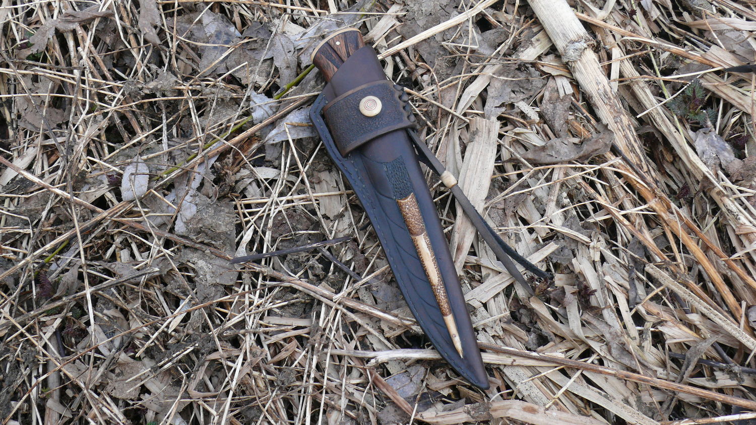 ножны подошвенный чепрак 4мм,кожа растительного дубления КРС 2,5мм,пуговиза кость и набор меди латуни бронзы ,накладка кость