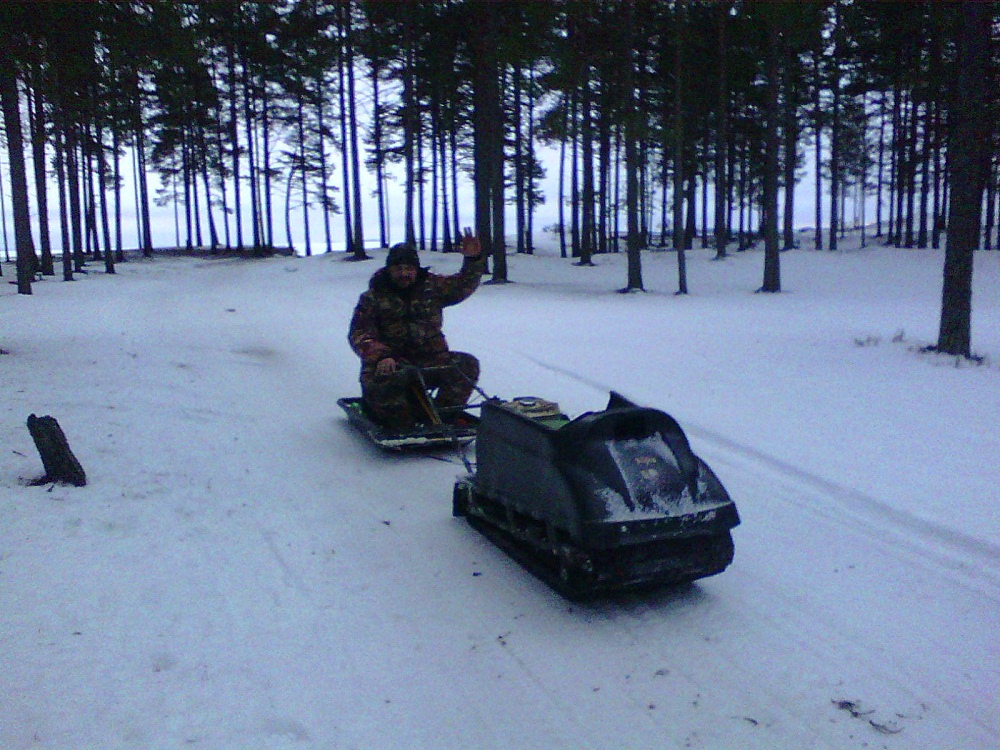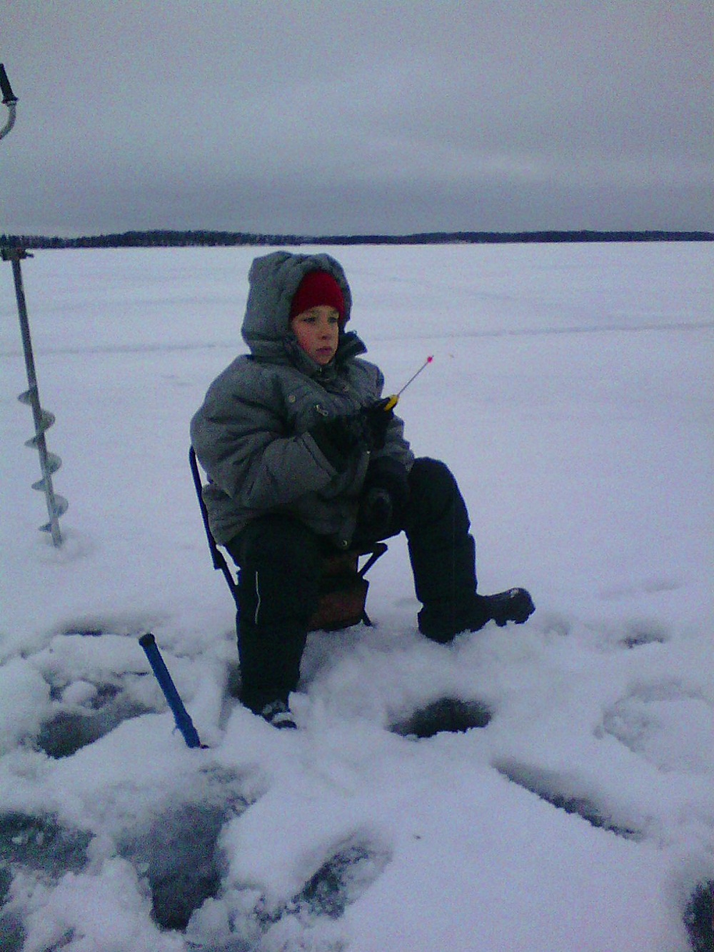 День субботний, великолепнейший день на исходе. На предстоящую рыбалку косо смотрели куча дел. Но никуда не денешься- рыбалка, обещанная ребетнышу на эти выхи сдавать свои позиции не желала. Да еще и на мотособаке, наконец то реанимированной, и порыкивающей по вечерам последние дни в гараже и во дворе. В пятничку пришлось еще до одиннадцати провозится в гараже, делая новое удлиненное дышло, т.к. со старым гнутым в волокушах вдвоем не комильфо. Сборы, глянуть форум, и к часу ночи можно завалится спать. Шесть- будильник, сборы, завтрак, и в дорогу. Собачка еще с вечера заняла свое местечко в машине. И вот тут просто закончились все слова, эмоции глушат. Накатались с малым по озеру от души, рыбалили от трех до десяти метров. Первая пара лунок упорно не желала делиться не только колючими обитателями, и даже не порадовала таким милым сердцу подергиванием кивка и ударами уверенных хваток передающихся в руку. Перебазировались на сотню метров, очередная пара лунок появилась в онежском льду, и вот… вот то за чем и едем мы за многие километры, не спим, покупаем, делаем, меняем, получаем и дарим соседям по палате кучу непонятных для не посвященных в рыбацкое прибамбасов, от удильников до супер внедорожников.. Есть первый окунь сегодняшней рыбалки, суповичок, и следом из воды, зацепленный любимой окуневкой- ложкой, его близнец. Еще еле ощутимое тюк в удильник, и на лед является матросик мизинчикого калибра и отправляется обратно в царство Нептуна. Ванюха стойко колдует над мормыхой и на предложение поменяться снастями гордо отказывается- каждый должен сам поймать свою рыбу, молодец. И старания не проходят даром- на свет Божий является колючее чудо придонной ихтиофауны, царь- рыба ерш. Ну а дальше смена мест, туды – суды. Переезд, пара лунок, мормудель и блесна идут в разведку, папа бдит за двумя удилами, а сына наяривает круги на мотособачке, пока моська не начинает протестовать против такого кислорода с снегом вперемешку. Горячий чаек из термоса, отогреется и по новой- смена мест, пара лунок, покатушки. Как результат- материальная часть рыбалки заключенная в четырех окушах и одном ерше, малая толика и далеко не цель, которую вряд ли кто четко сможет озвучить. Но, тарелочка ухи, сваренная из свежайшей рыбки, греют не ложку но душу юного рыболова, угостившего добычей бабушки. Как то вот так, просто и незатейливо, и пролетел один рядовой и вроде совсем заурядный день- день, оставивший в душе что то неощутимое, но такое доброе и приятное.