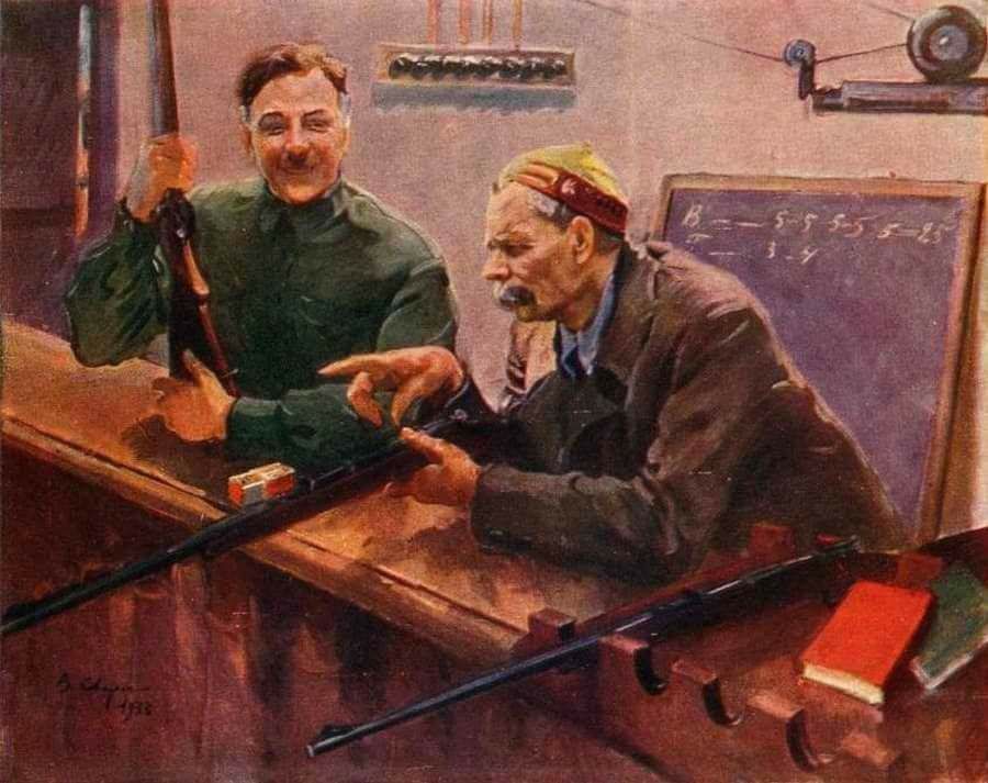 "К.Е. Ворошилов и А.М. Горький в тире ЦДКА"