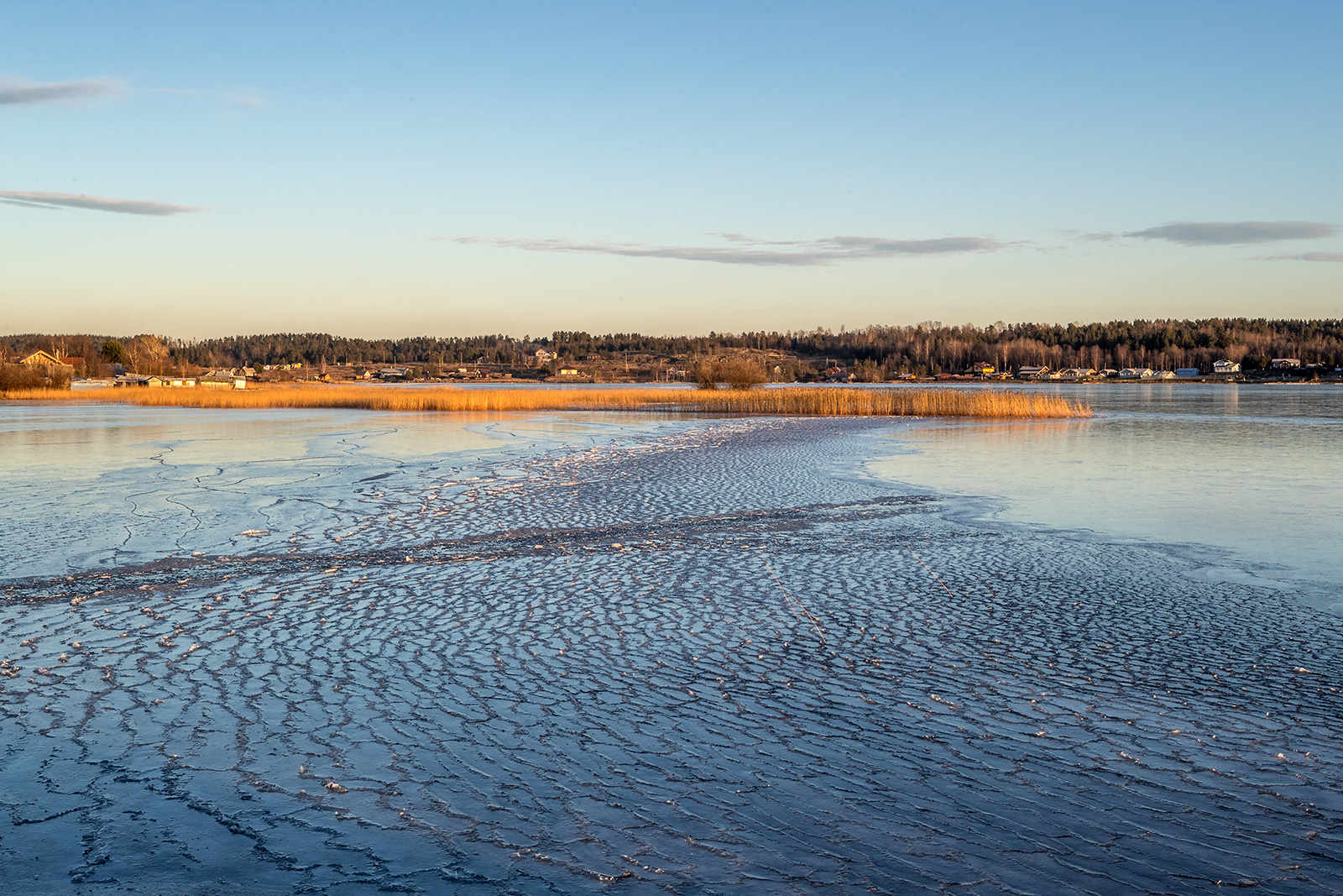 Укшезеро - есть тонкие забереги, а по центру пока еще живая вода.