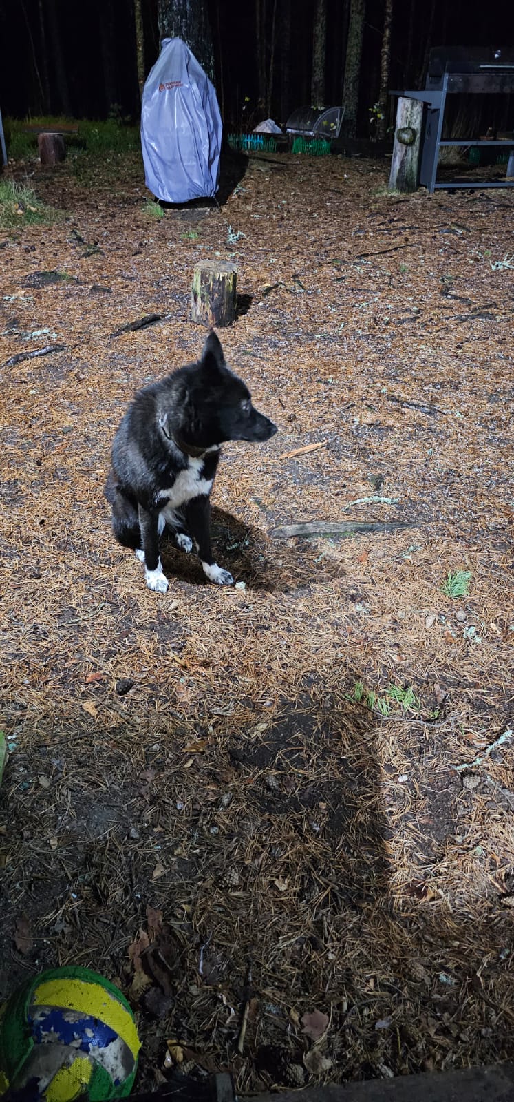"В Соддер прибилась черно-белая лайка, с радиошейником на шее. Очень ласковая и добрая. От дома не отходит. Контактов на ошейнике нет. Может кто ищет. Тел для контакта 8 981 400 54 73."