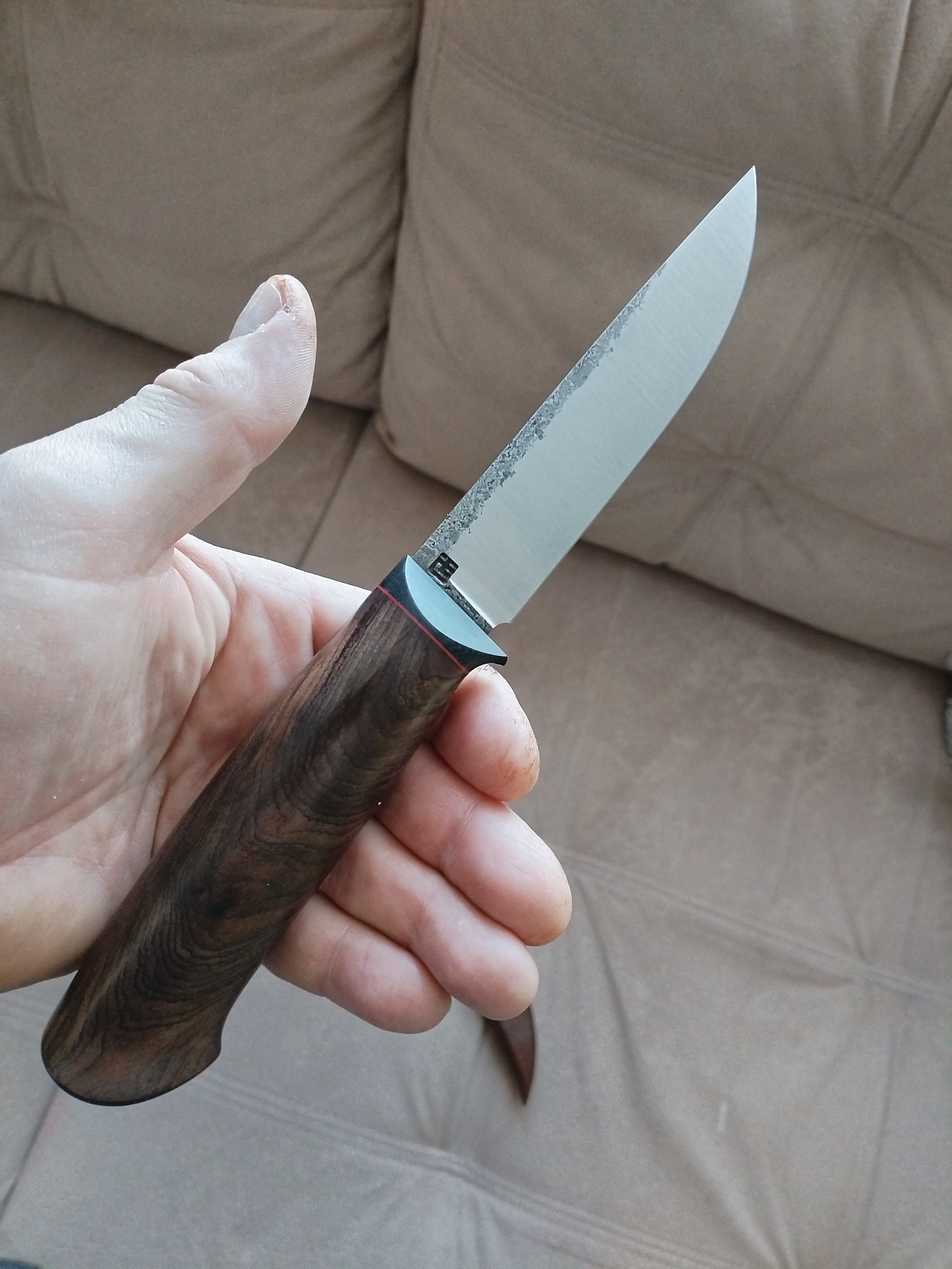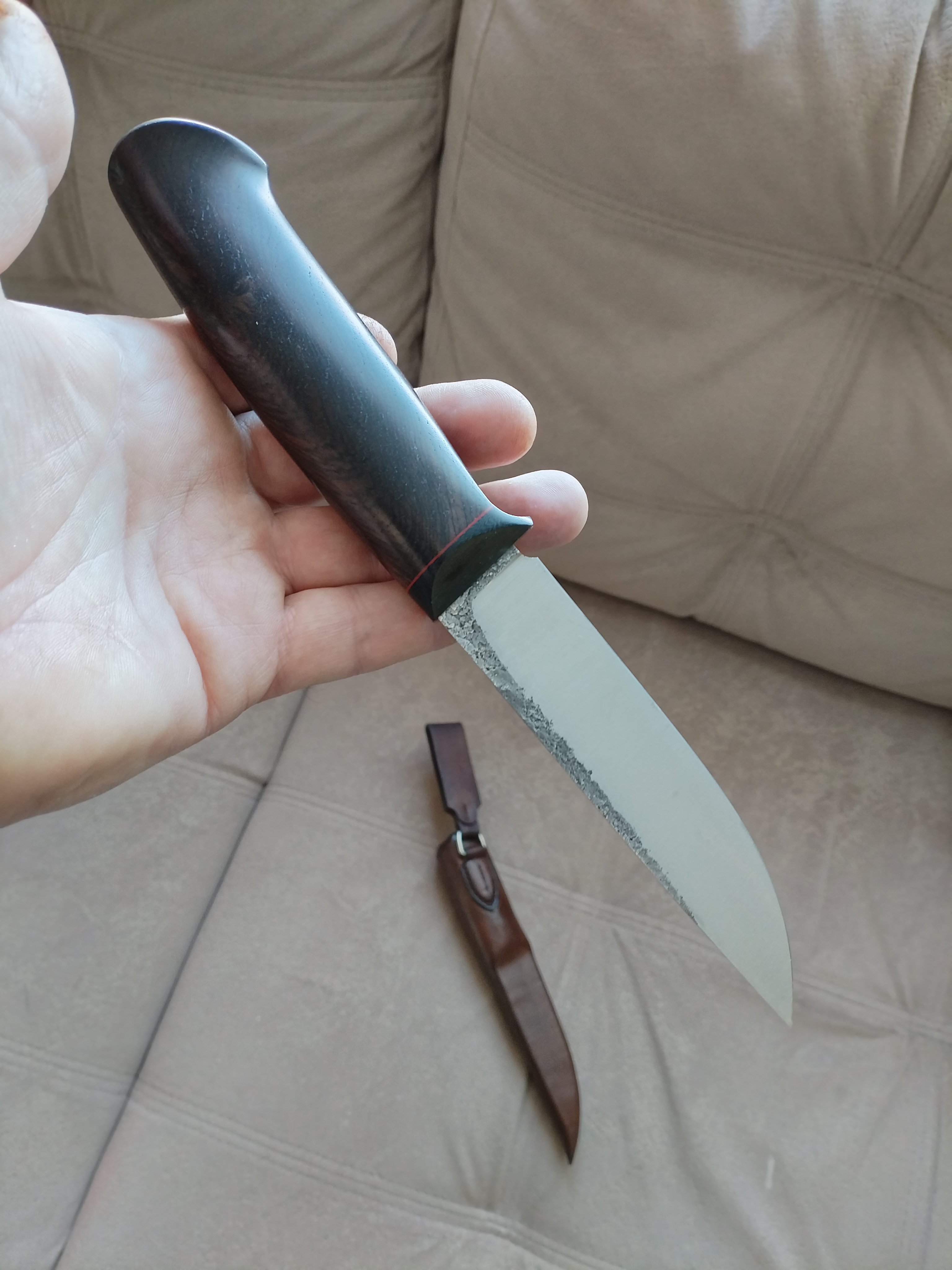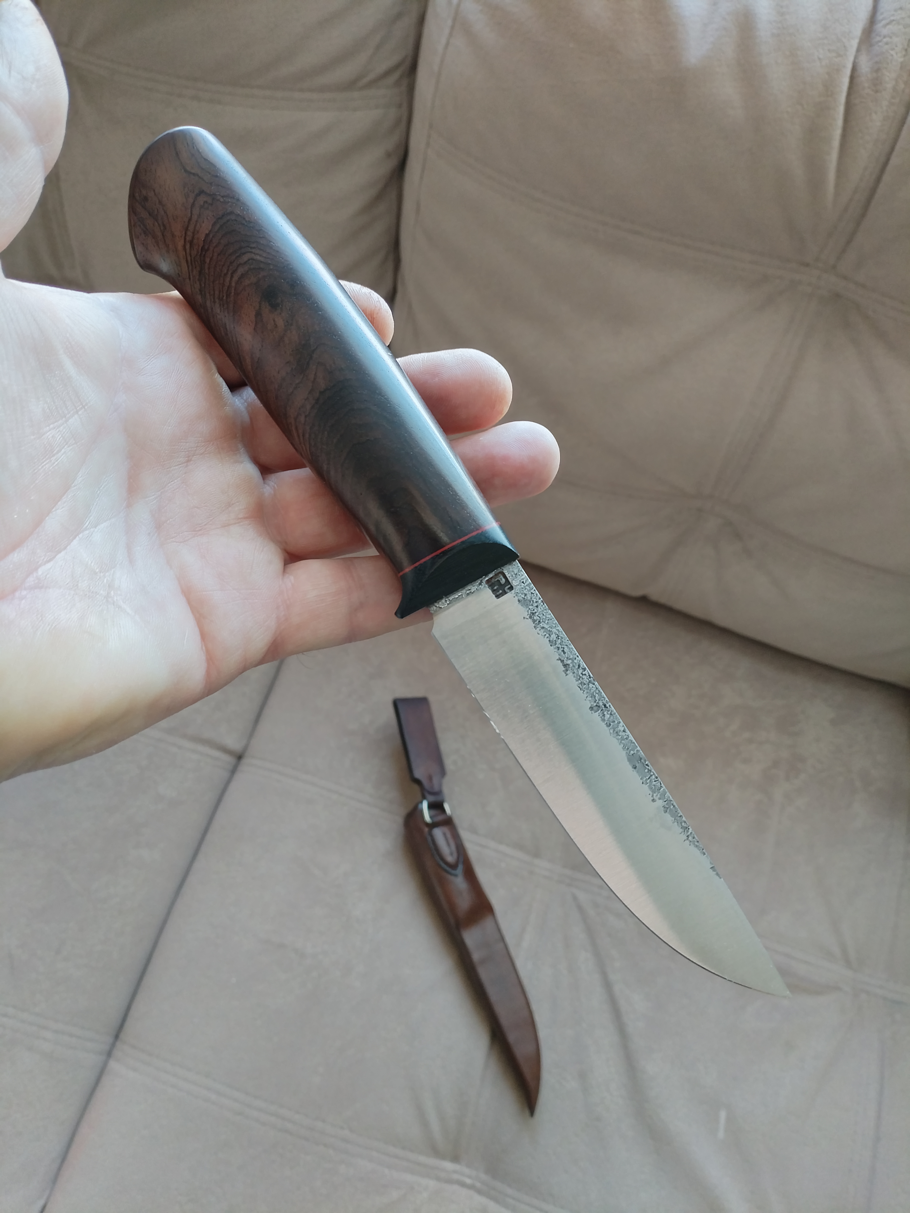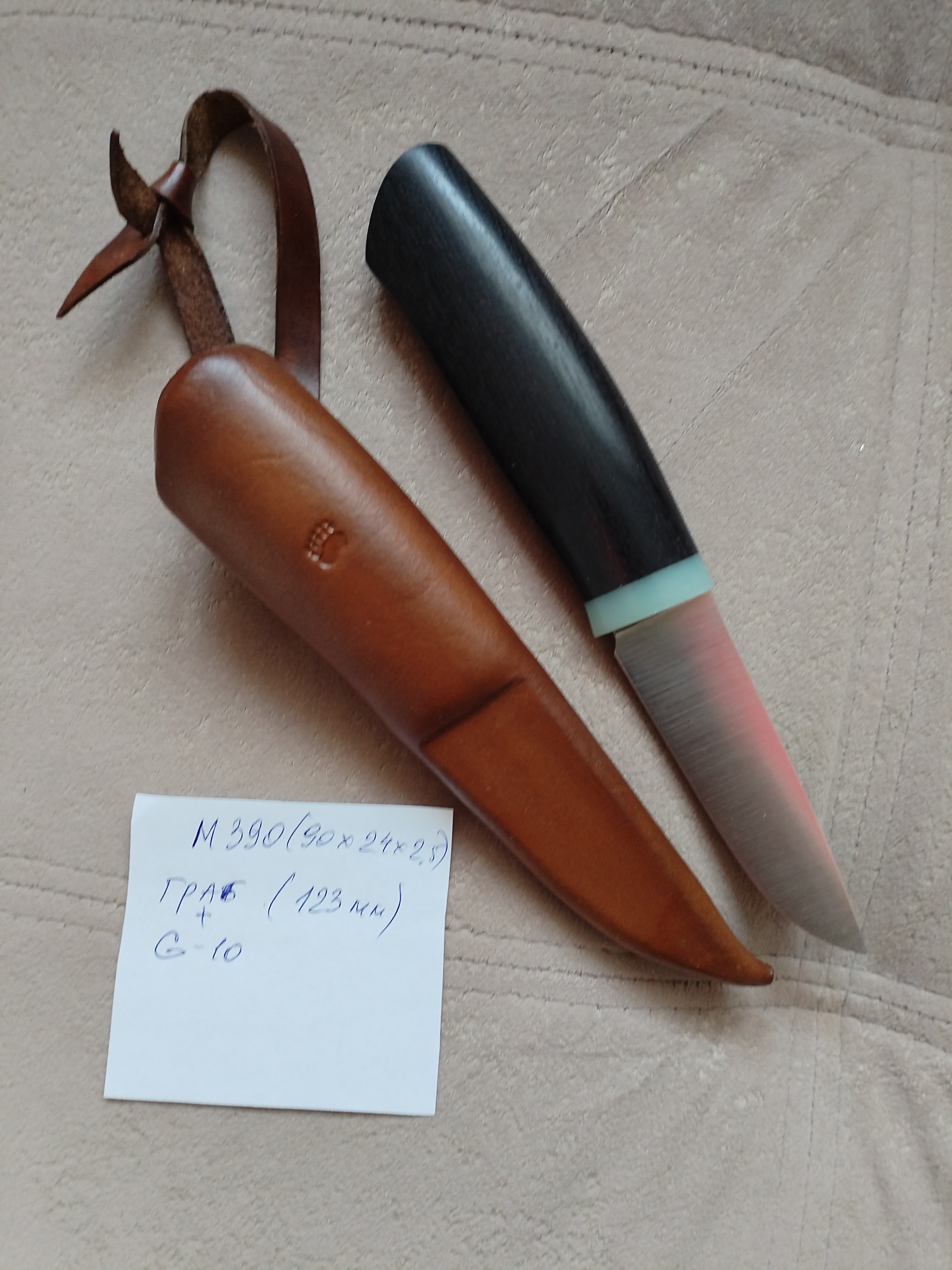 Рукоять блэквуд+G10, по размерам около 130 мм