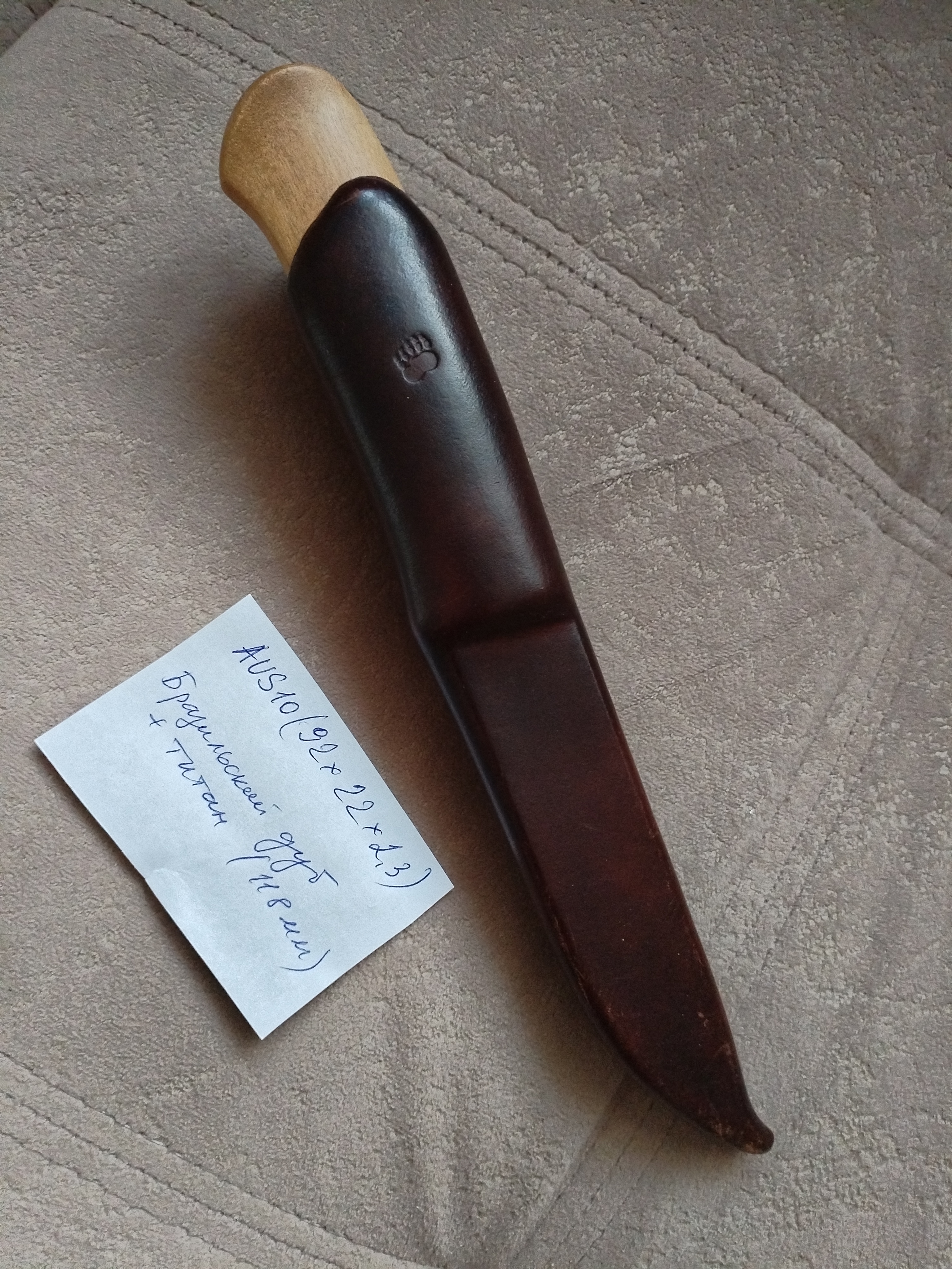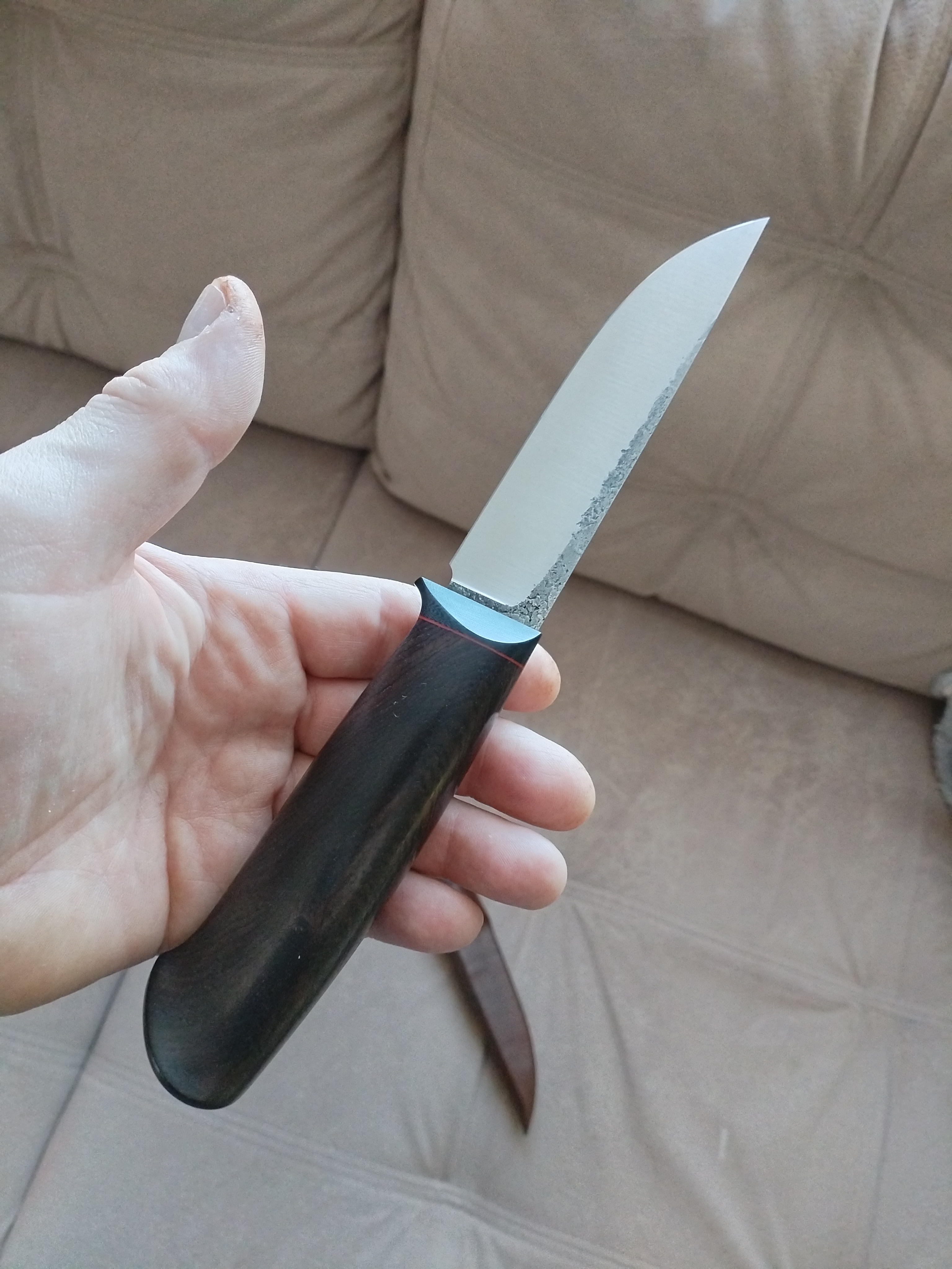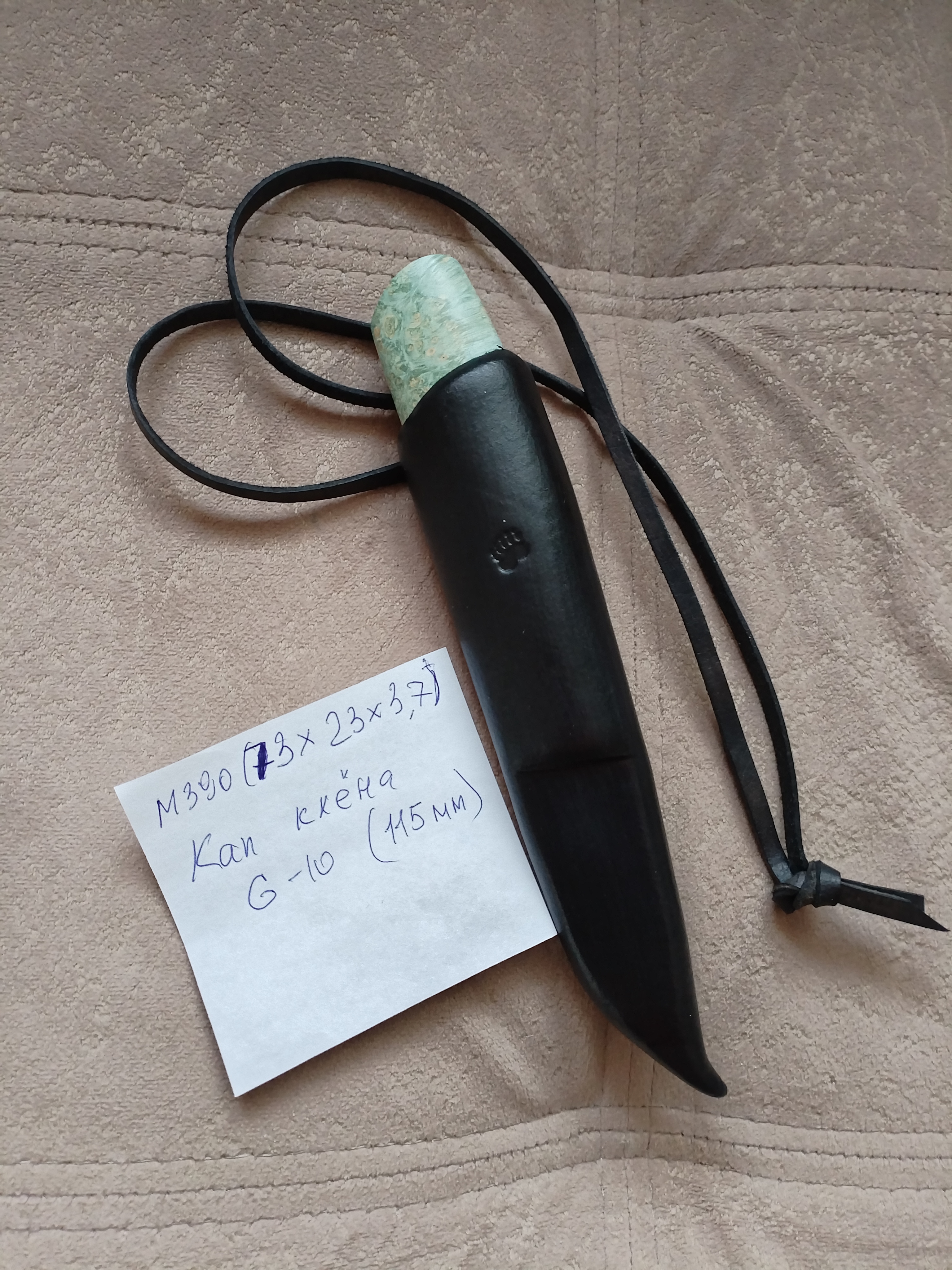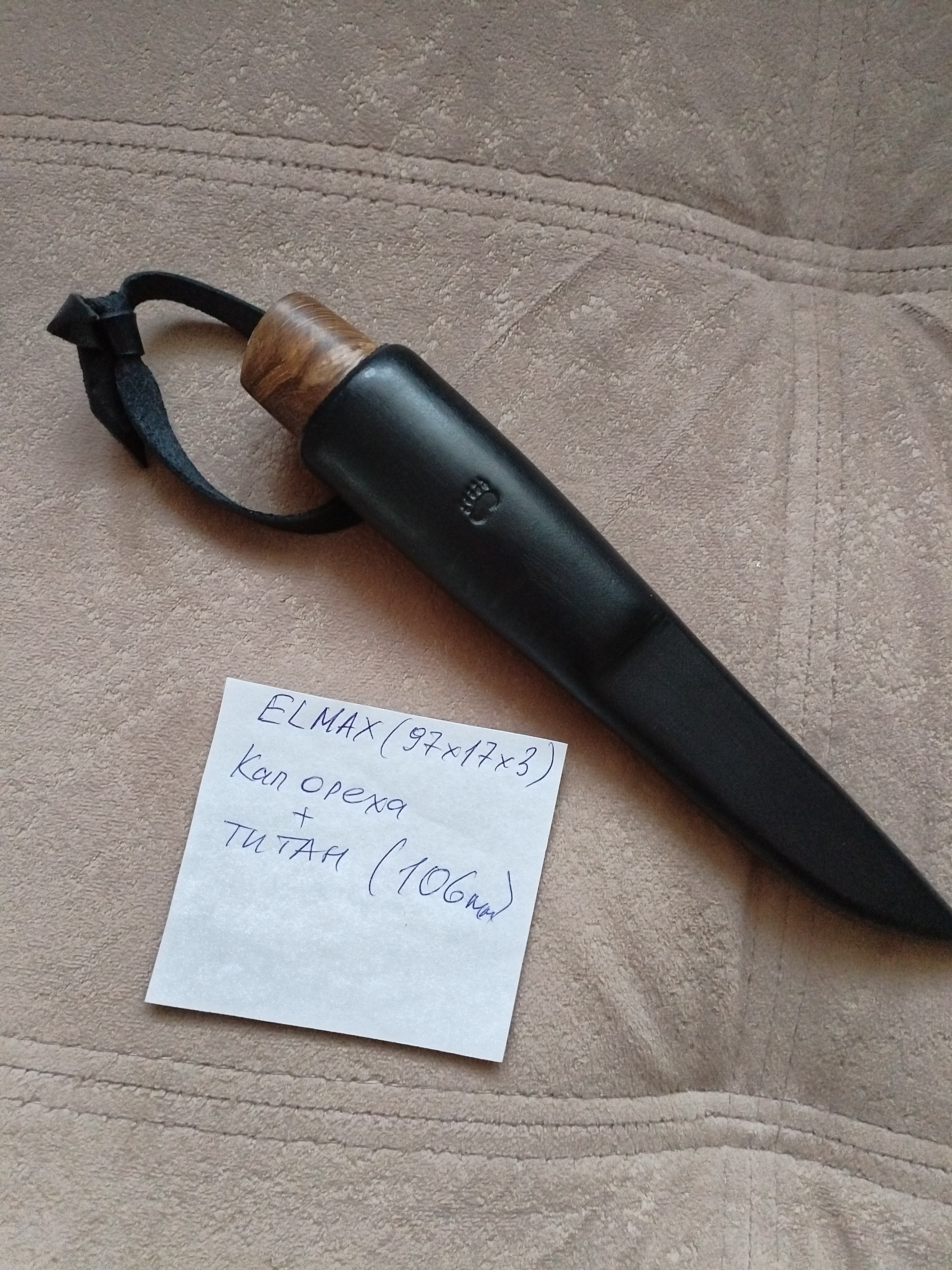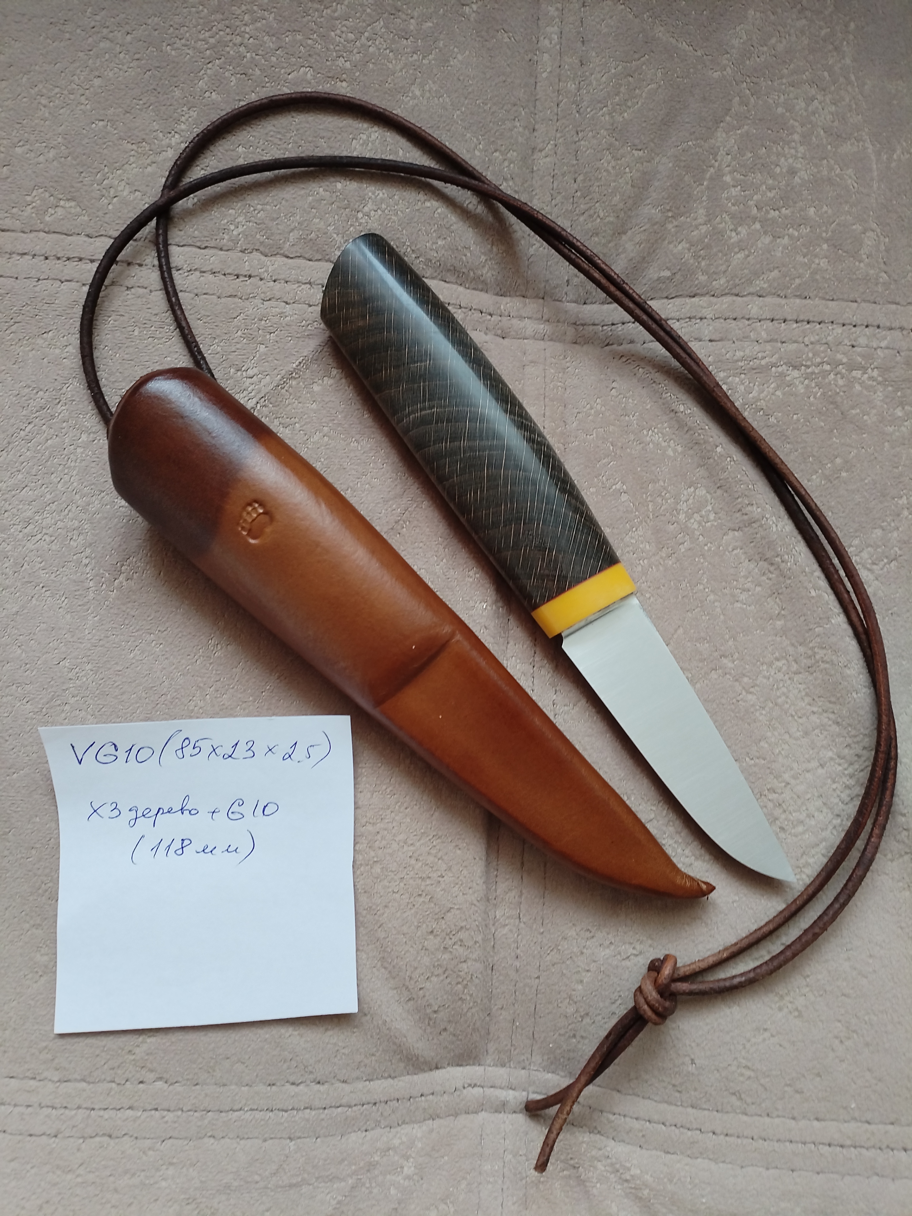 Рукоять блэквуд+G10, по размерам около 130 мм