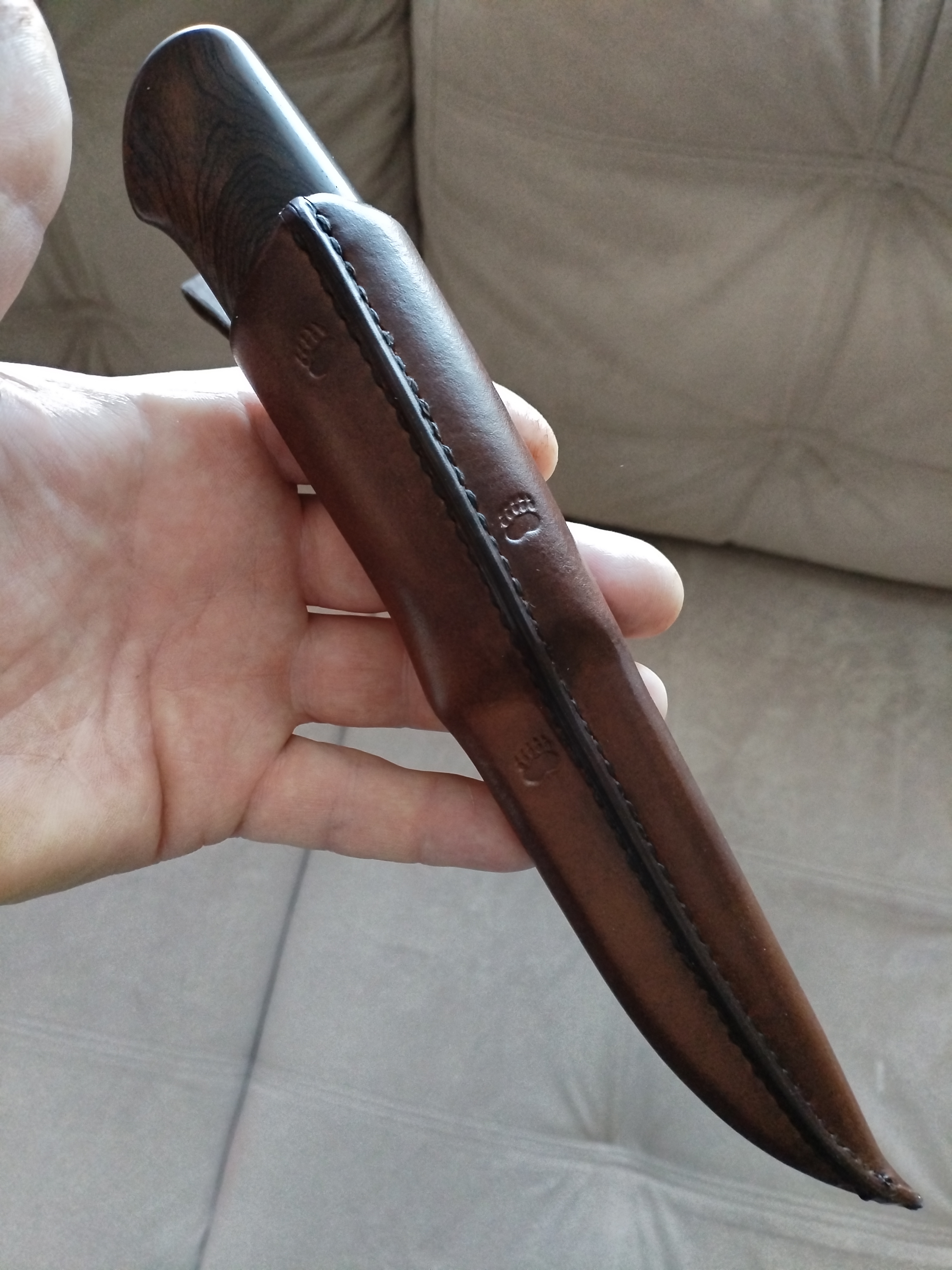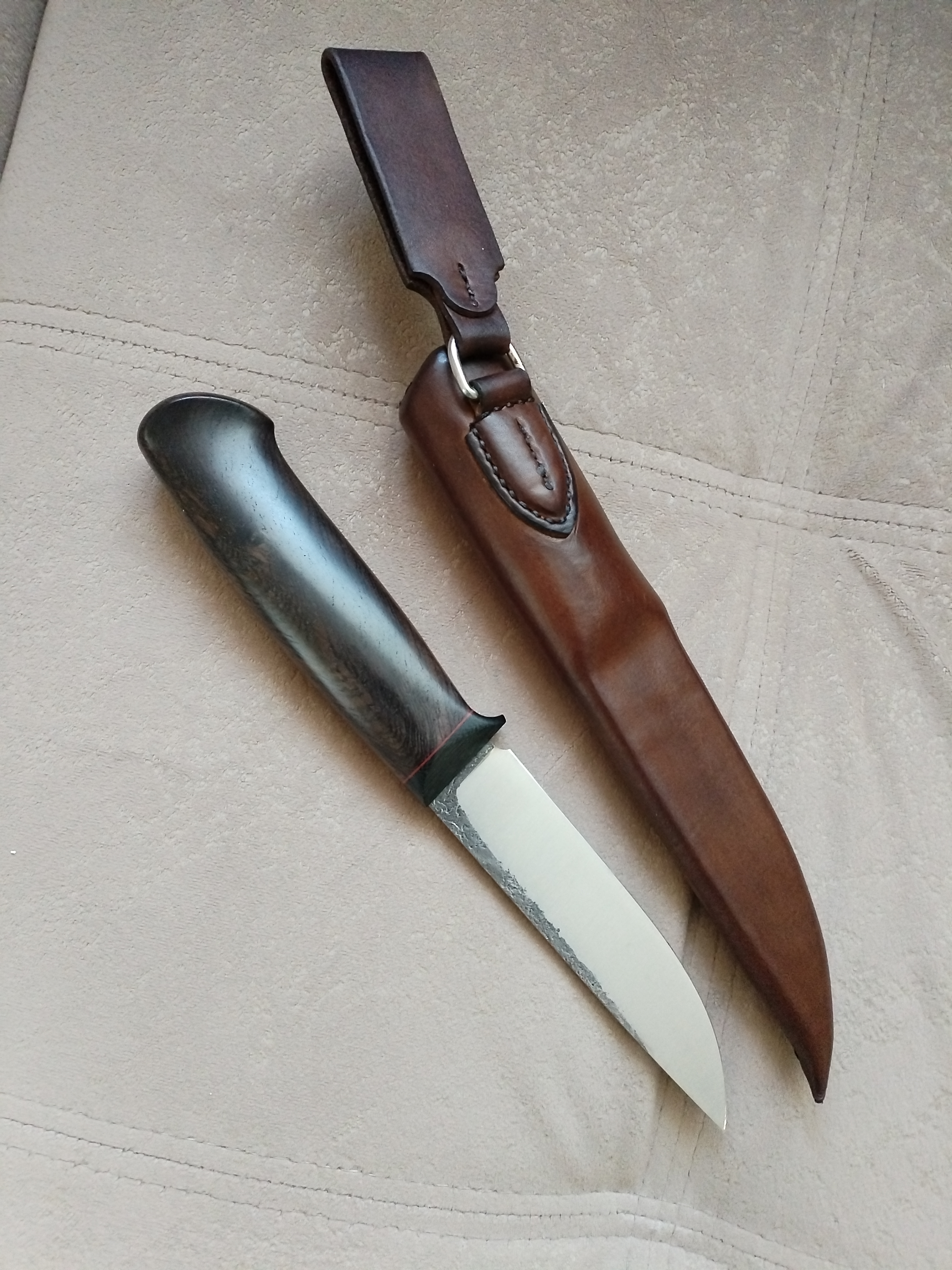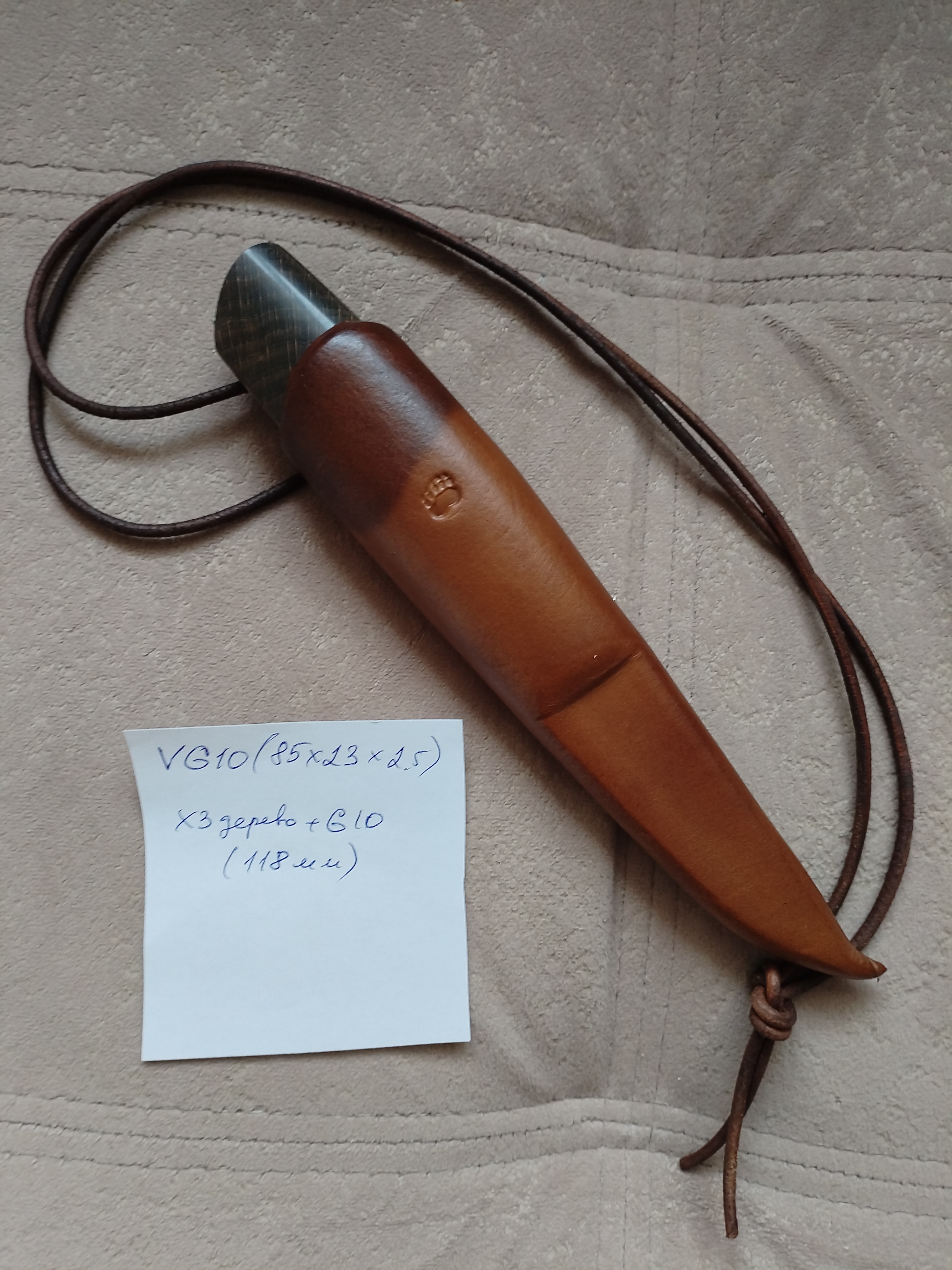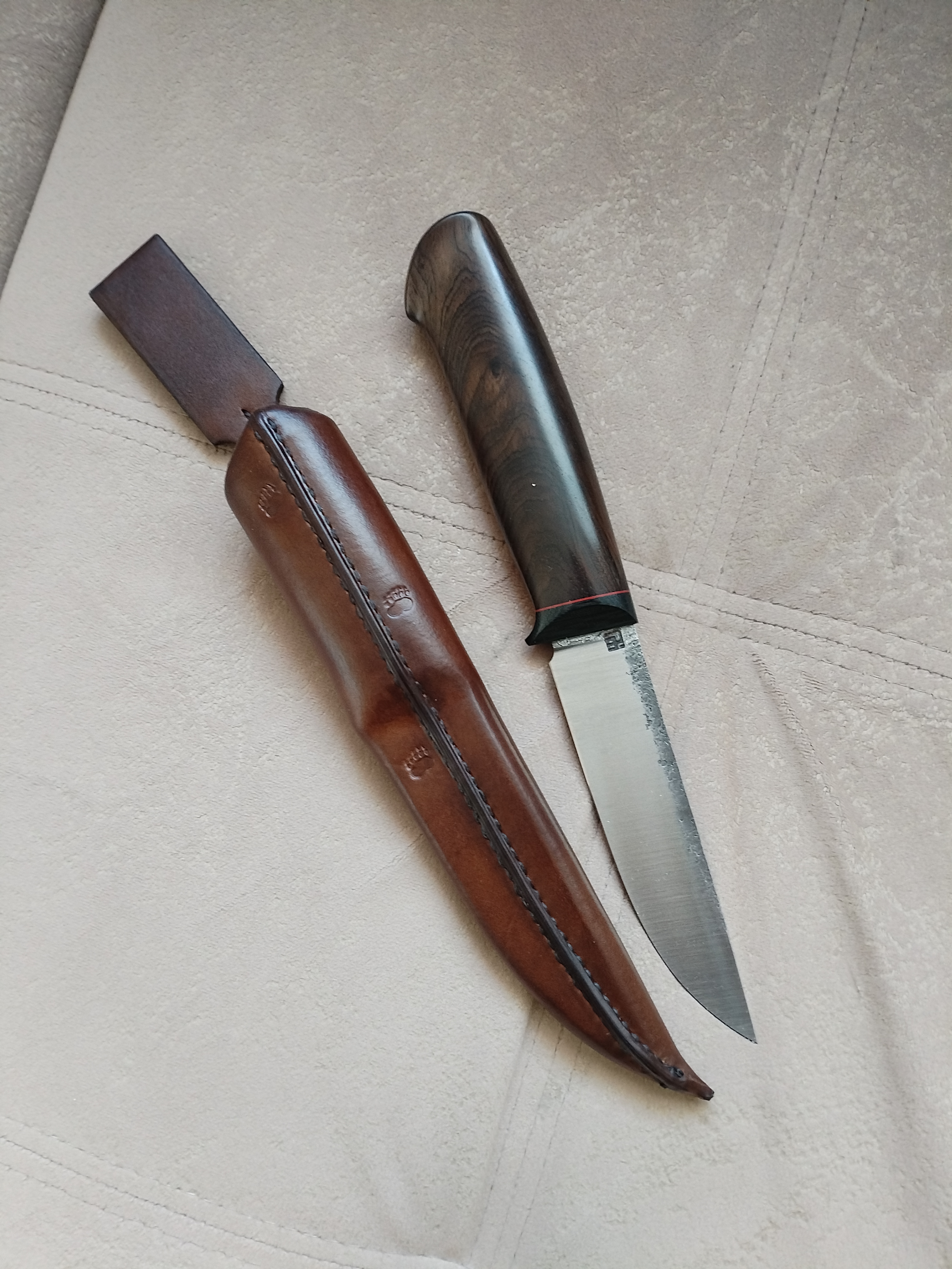 Рукоять блэквуд+G10, по размерам около 130 мм