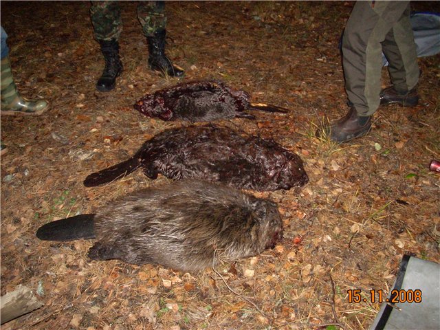 Сам бобра не стрелял, но в прошлом году были на охоте и рыбалке в Вологодской обл., дядька стрелял по бобру из лодки, бобра взял, но при выстреле отлетело цевье от иж-18 и утонуло! Вот такой золотой бобер!А местные рыбаки рассказывали, не знаю правда или нет, что стрельнули бобра на 60кг.