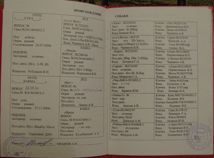 - Собака: 2 ЗСЛ кобель, сука