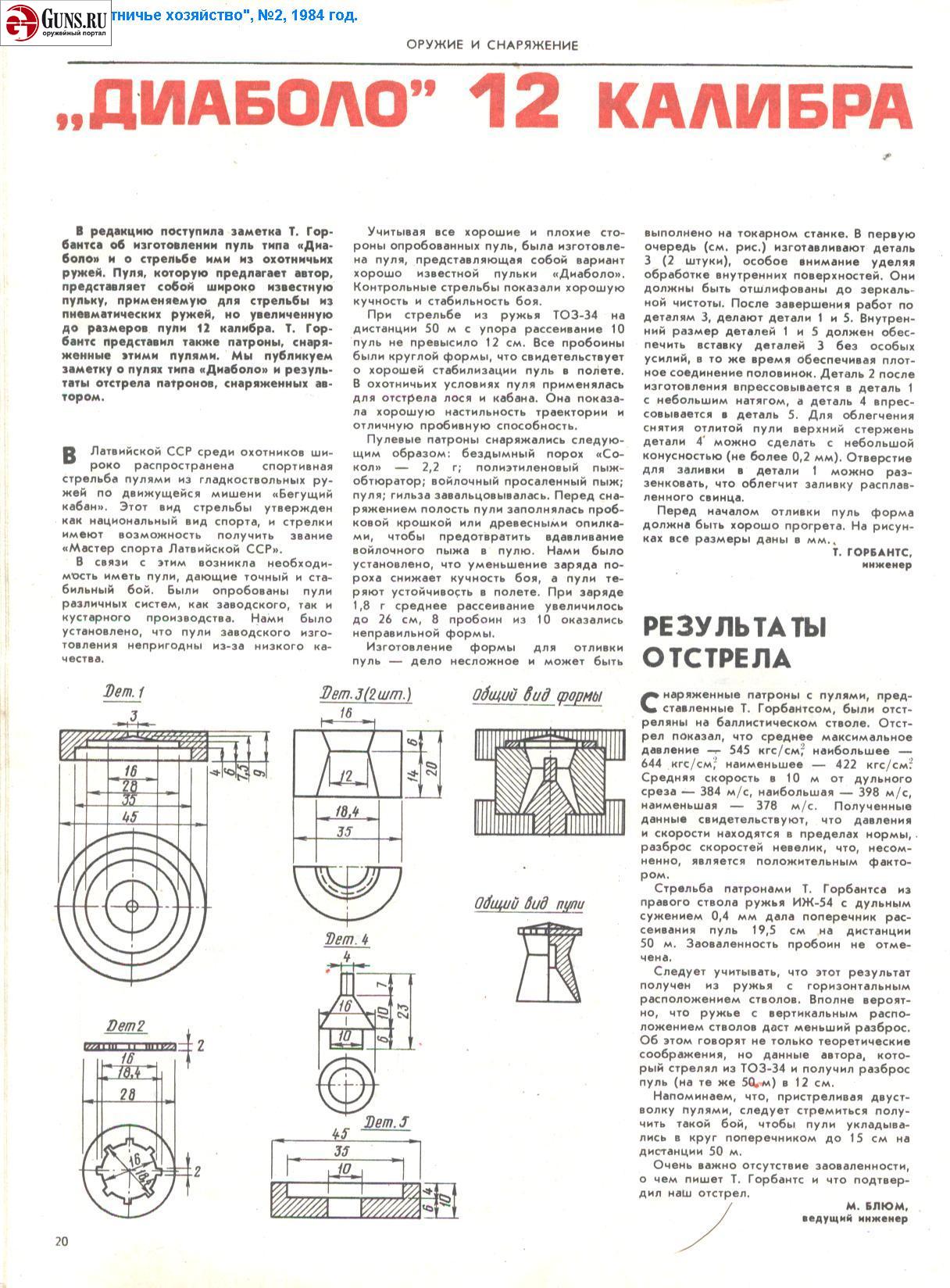 Это так, на скорую руку. Можно ещё поискать. А то, что её на пострелушках используют - вовсе не значит, что это плохая пуля. Отнюдь. Просто при наличии пулелейки - она практически бесплатная. Какой смысл в таком случае использовать для пострелушек Гуаланди или Бреннеке? Вот как то так...