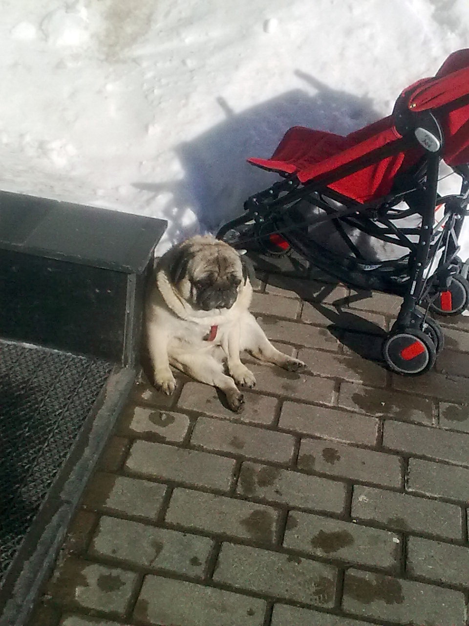 Сегодня у банка, на солнышке охранял колясочку