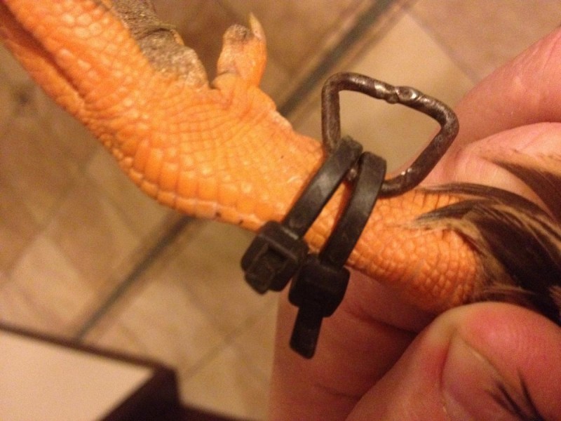 olddan писал(а):...пластик? ...не натирает он им лапку?я своим всегда делал из широкой кожаной полоски с колечком...