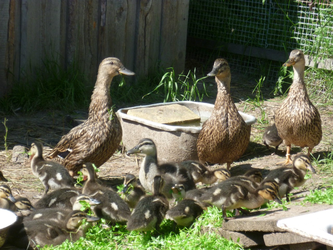 Трех-четырех уток вполне возможно держать и в городских условиях - в вольере. Вольер для этой цели достаточен размером 2х4 м. В нем с одной стороны нужно выкопать и обмазать раствором цемента яму 1х2 м и глубиной 50 см. Чтобы вода не застаивалась, ее следует менять не реже одного раза в 10 дней. При вольерном содержании уток нужно кормить не реже трех раз в день. Давать им можно любое зерно, замешивать с вареным картофелем отруби, обязательно давать зеленый корм (свежую рубленую капусту, морковь, рубленую травку) и иметь в вольере ящик с мелким гравием. Весной хорошо добавлять в корм гашеной извести или толченой яичной скорлупы, иначе утки будут нести яйца с тонкой непрочной скорлупой. В вольере нужно загородить один угол, чтобы в нем было темно. Хорошо поставить там длинный ящик, в котором утки сделают себе гнезда. Положите туда соломы и сена, остальное они доделают сами. Вмешиваться в этот период в жизнь уток не следует. Лишь при наличии большого количества яиц лишние нужно убрать, оставив под одной уткой не более 12 штук. Утки сидят на яйцах 30 дней. Вылупившихся утят, чтобы они обсохли, необходимо забрать и положить в решето с ватой. Первые 3 - 4 дня их нужно кормить мелко накрошенным круто сваренным яйцом, а уже на четвертый день можно им давать и пшенную кашу и творог. Неплохо давать немного фарша или дождевых червей, которых они с жадностью будут заглатывать.