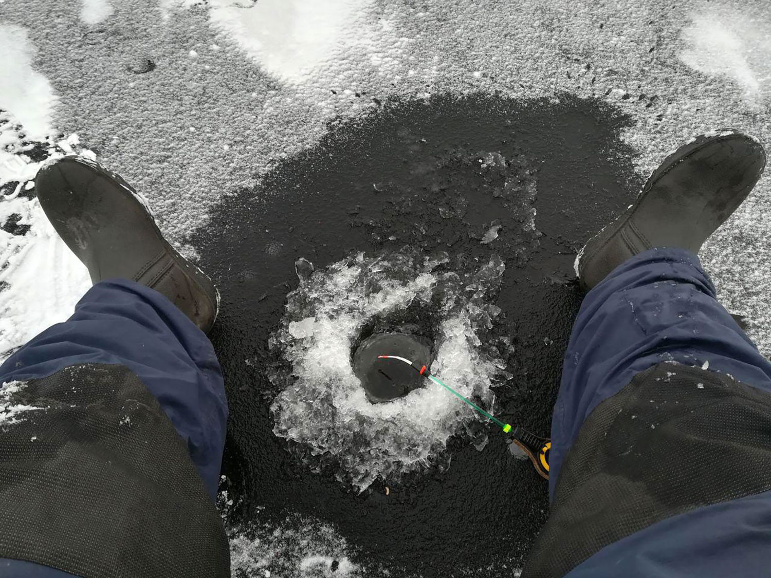 Название водоема и его ориентиры называть не будем пока, так как на мой взгляд - лед еще не везде надежный. Но несколько телефонофото прицеплю.
