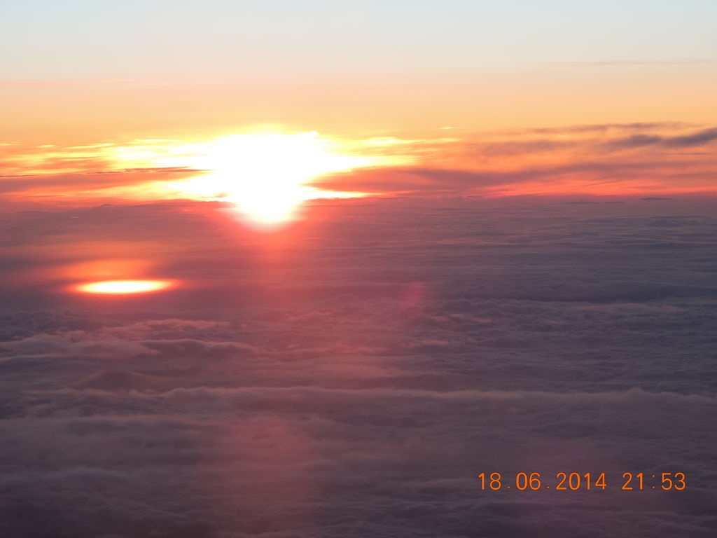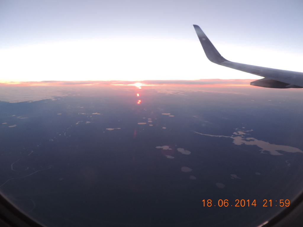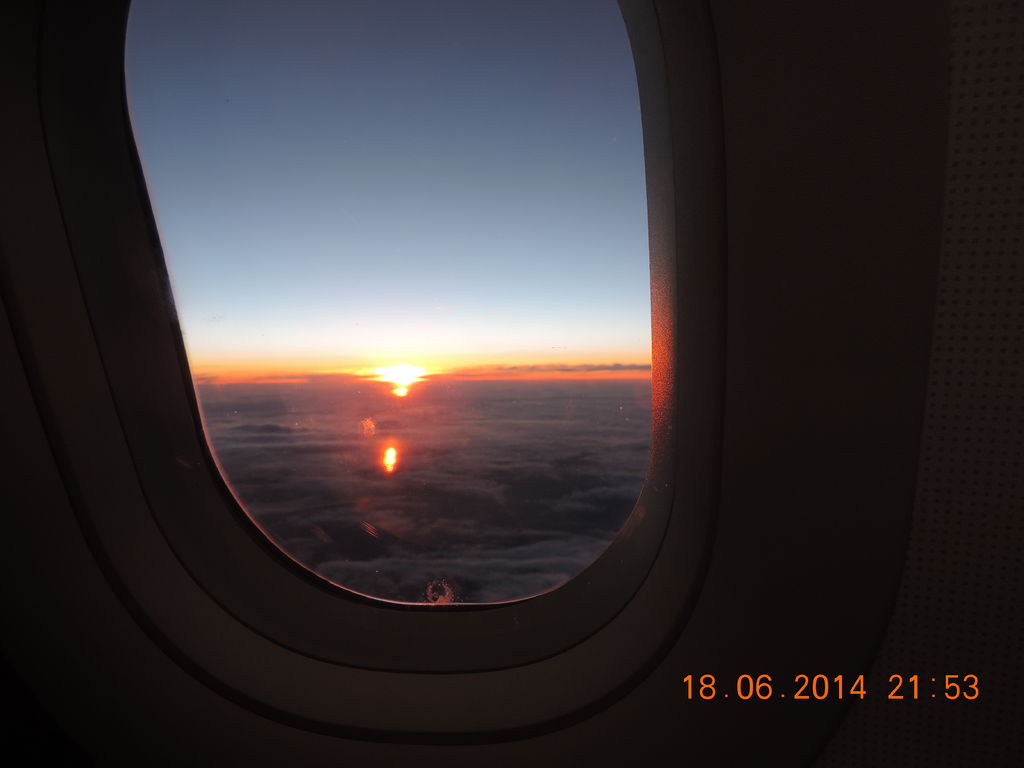 Что интересно, вылетая с Москвы вечером - можно наблюдать закат солнца, а через пару часов полета уже встречать рассвет, летим на восток :-):