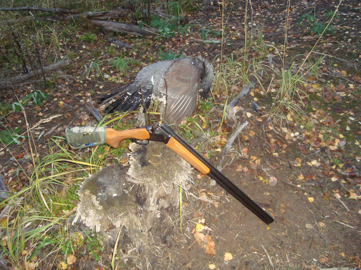 Но решено было пройти и посмотреть, а мало ли. Как оказалось, решение было верным. Птыц отлетел от дороги метров на 150 в сторону вырубки и уселся на здоровенную ель. Дальше всё как по книжке: долгое скрадывание, боязнь даже громко дышать, когда вот-вот сердце выпрыгнет из груди от волнения, не то, чтоб наступить на веточку. Но всё получилось. Выстрела было два. Второй, как говорится, вдогонку.